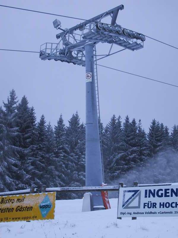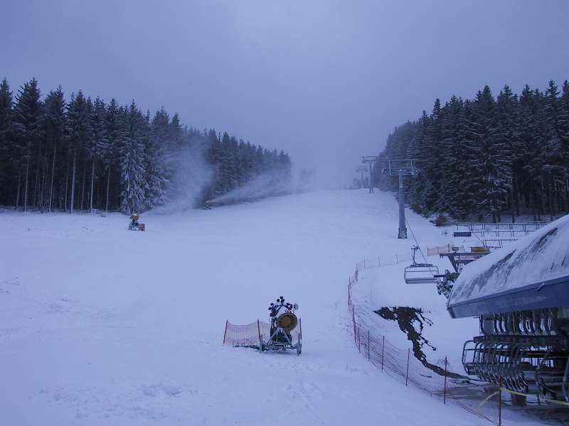 Auf rutschigster Strasse schlittern wir dann im heftigen Schneetreiben durch Winterberg. Es ist bereits 14:00Uhr bei Ankunft, und die Schneekanonen ballern was das Zeug hält zu dem wirklich starken Schneefall, Skibetrieb war eingeschränkt möglich!