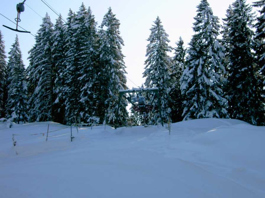 Das Skigebiet Grabs hat ebenfalls seine Vorzüge, es gibt keinerlei Wartezeiten und die Pisten sind schön leer (auf der Talabfahrt habe ich nur einen Menschen gesehen). Die Piste am SL Hochegga ist zwar kurz aber durchaus interessant. Auch die Talabfahrt ist nicht schlecht. Ein Erlebnis für sich ist ebanfalls die Fahrt mit der alten Sesselbahn durch den verschneiten Wald.