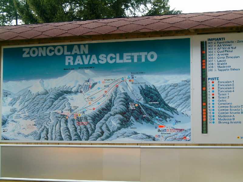 Das Gebiet besteht aus 2 Teilen: Der untere beim Dorf Ravascletto wird durch eine steile DSB erschlossen, die die lange blaue Piste Canalone erschliesst. Außerdem mehrere kleine Tellerlifte. Eine Pendelbahn ohne Talabfahrt führt von hier auf den Monte Zoncolan. Hier oben gibt es zwei Vierersessel (einer kuppelbar von Leitner) sowie 2 Tellerlifte. Nächstes Jahr soll weiter ausgebaut werden. Die Pisten sind autobahnmäßig, teils sehr flach, aber schön zu fahren. Einige Verbindungen sind mit dem Snowboard nicht optimal.