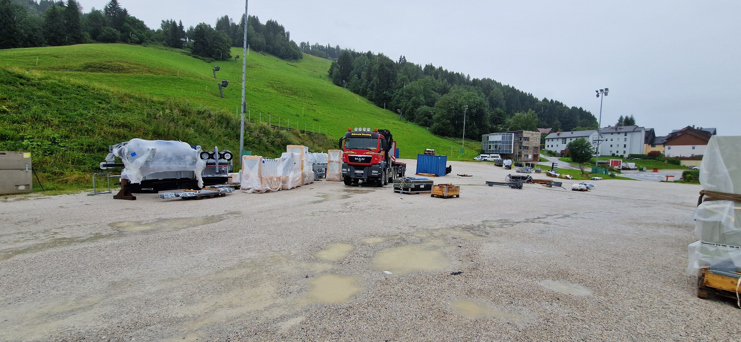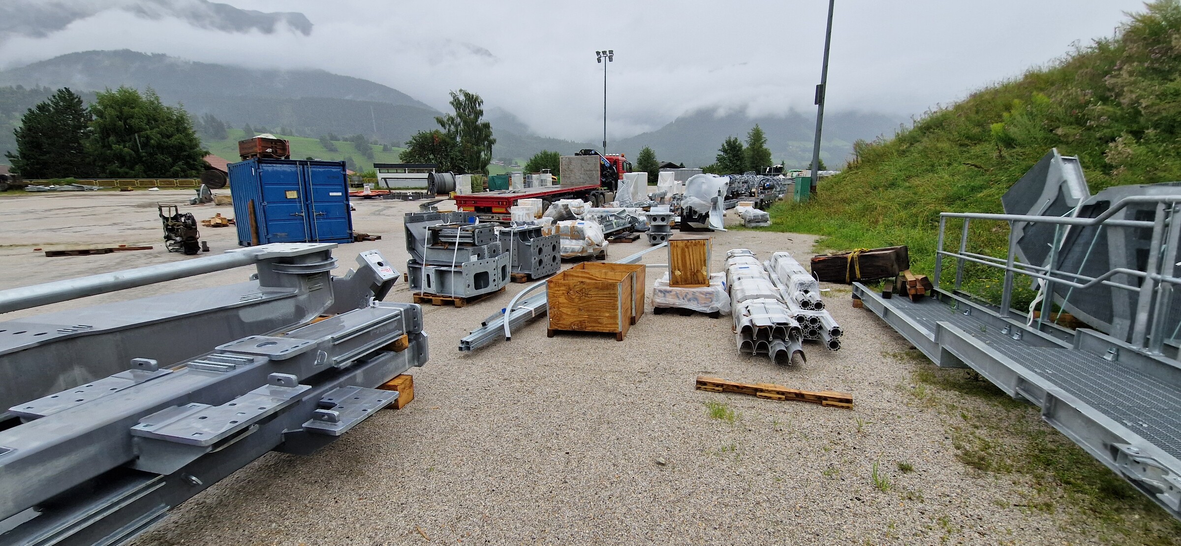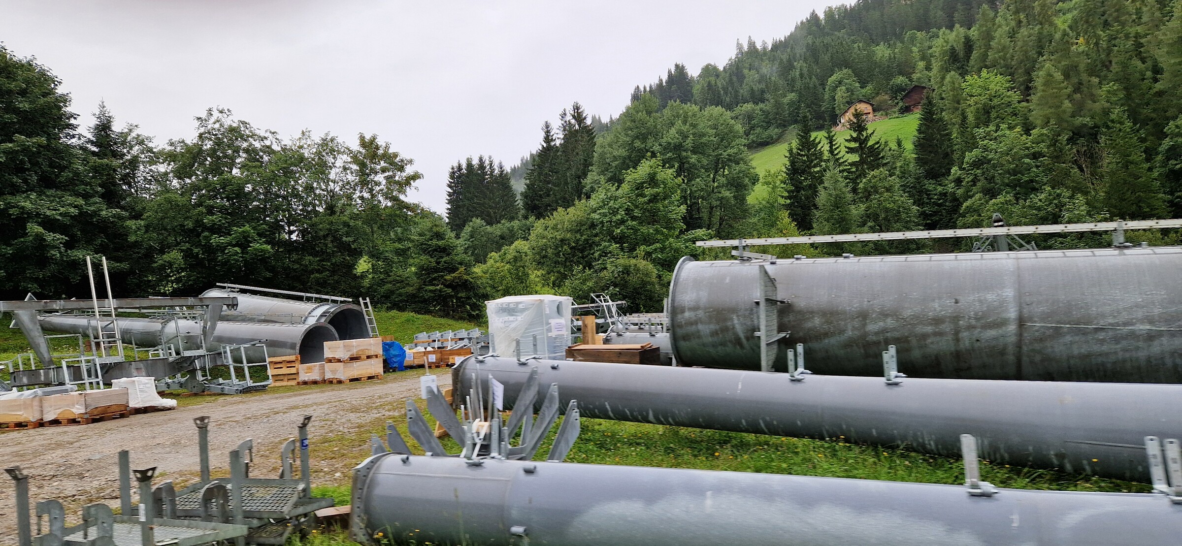 Update aus Forstau ... es nimmt Formen an, die Seilbahntechnik im Tal wird montiert: Juli 2025: Die Tal-, Mittel- und Bergstation "wachsen"