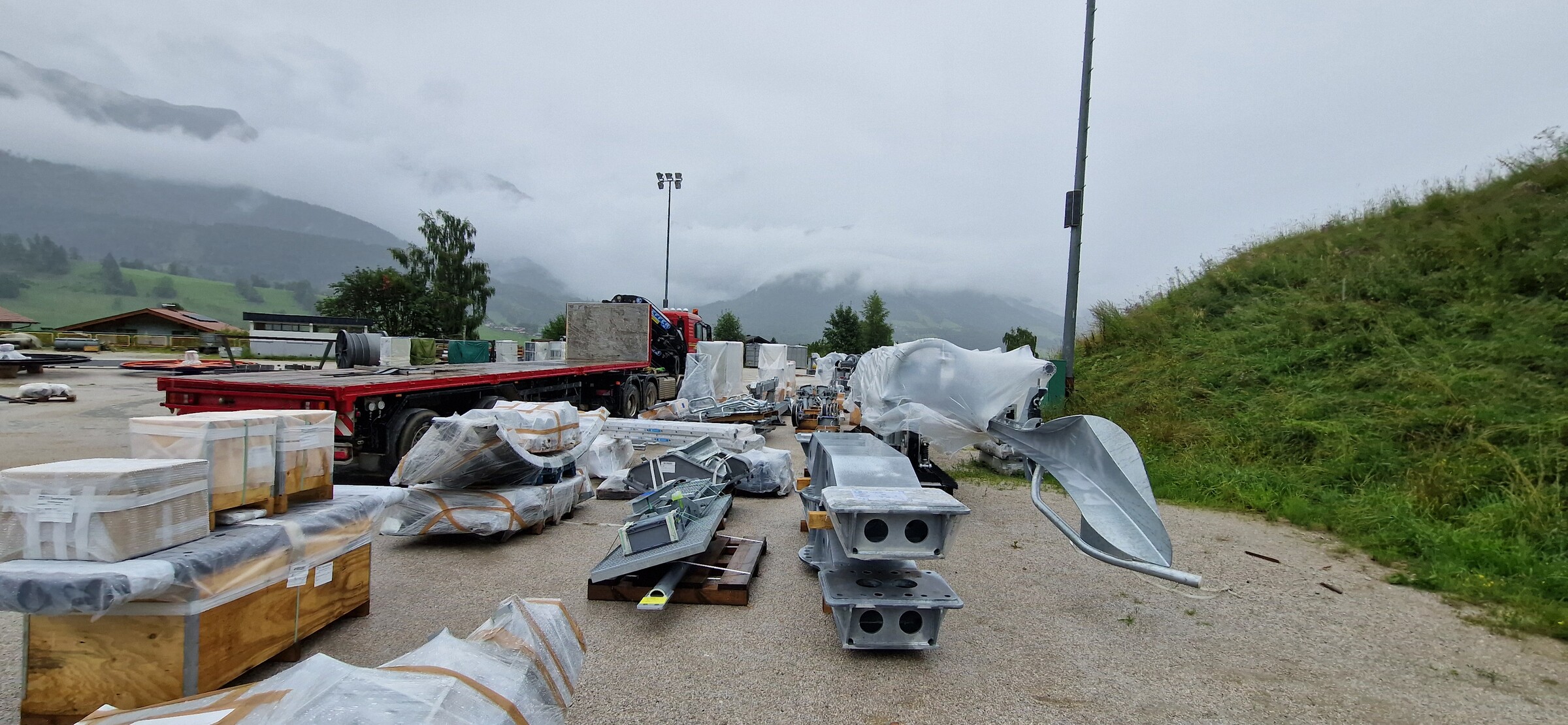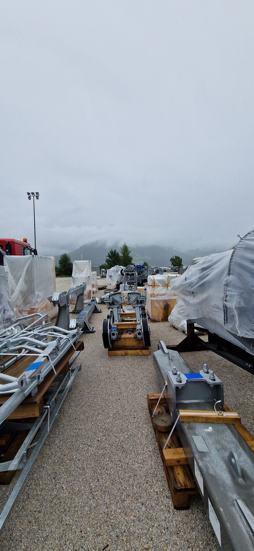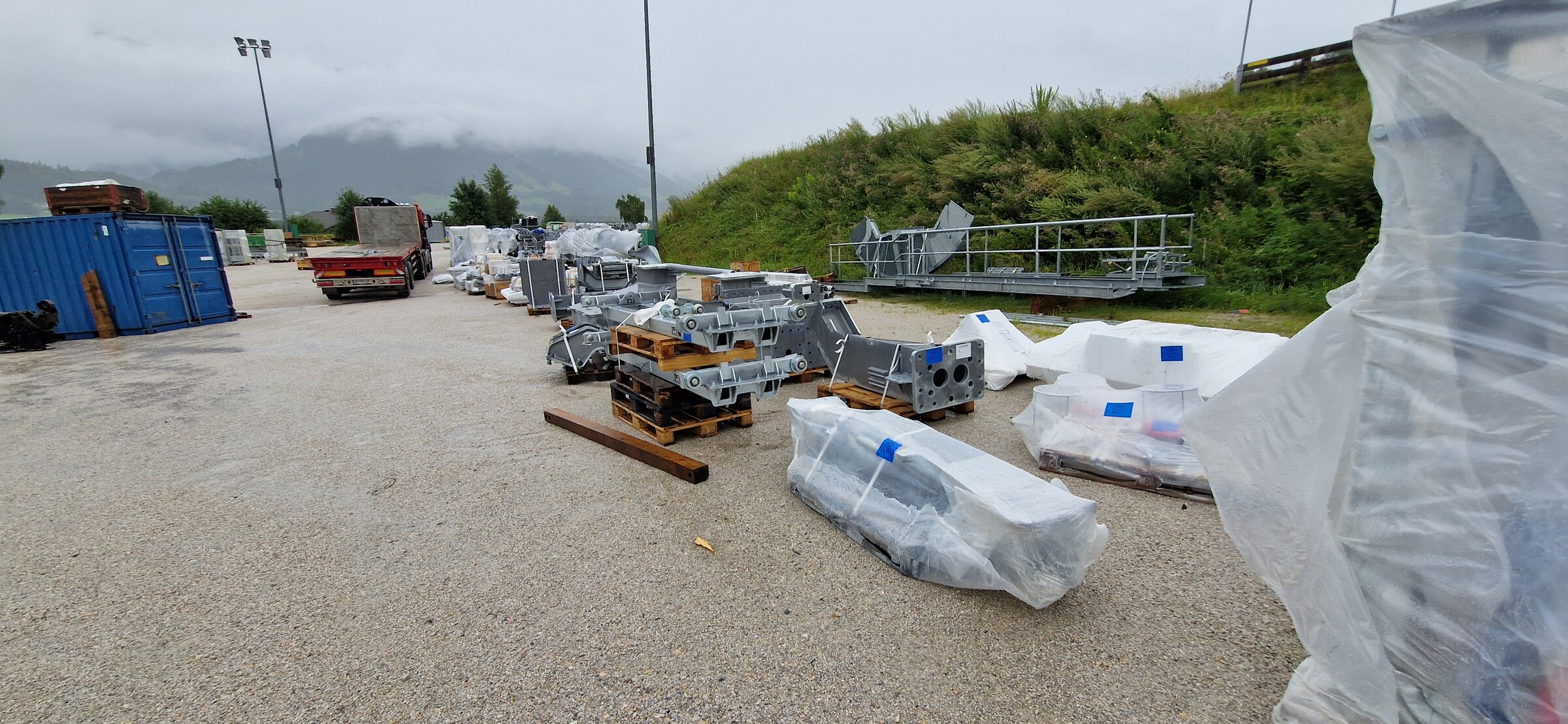 Update aus Forstau ... es nimmt Formen an, die Seilbahntechnik im Tal wird montiert: Juli 2025: Die Tal-, Mittel- und Bergstation "wachsen"
