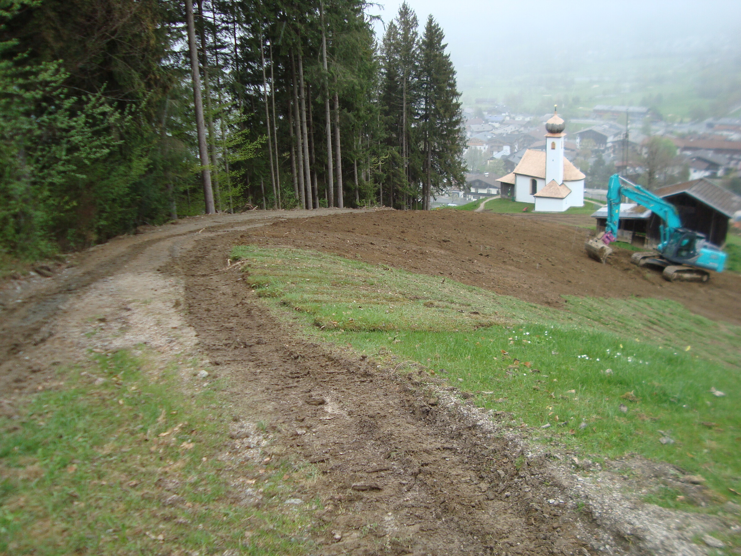 Entschärfung des steilsten Teil der westlichen Vätterstättpiste mittels Skiweg.