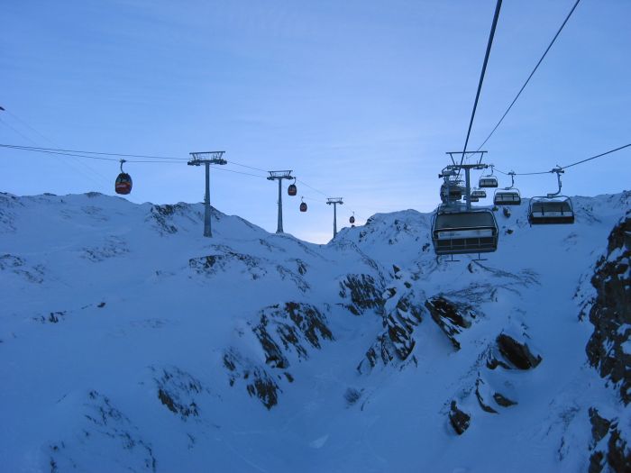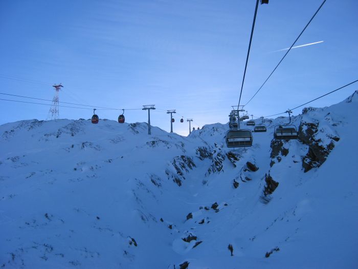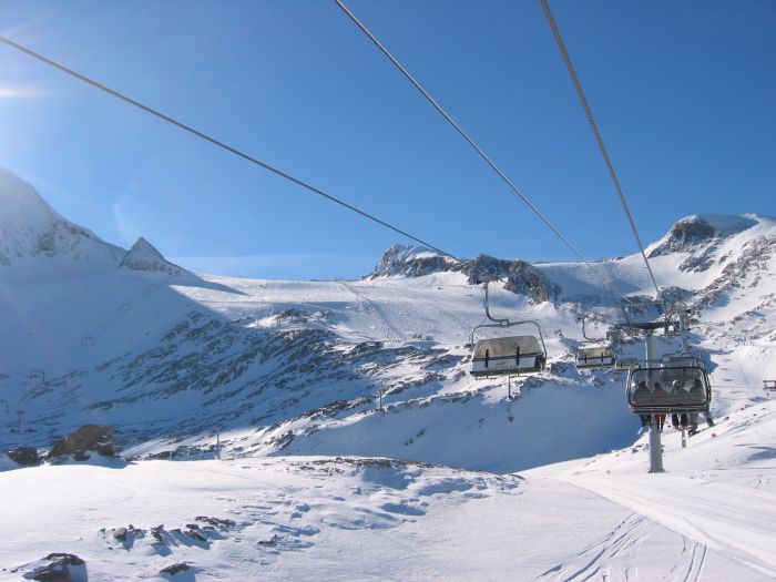Gratbahn mit Blick auf den gletscher. Ganz links im schatten sind die schmiedingerlifte zu sehen.