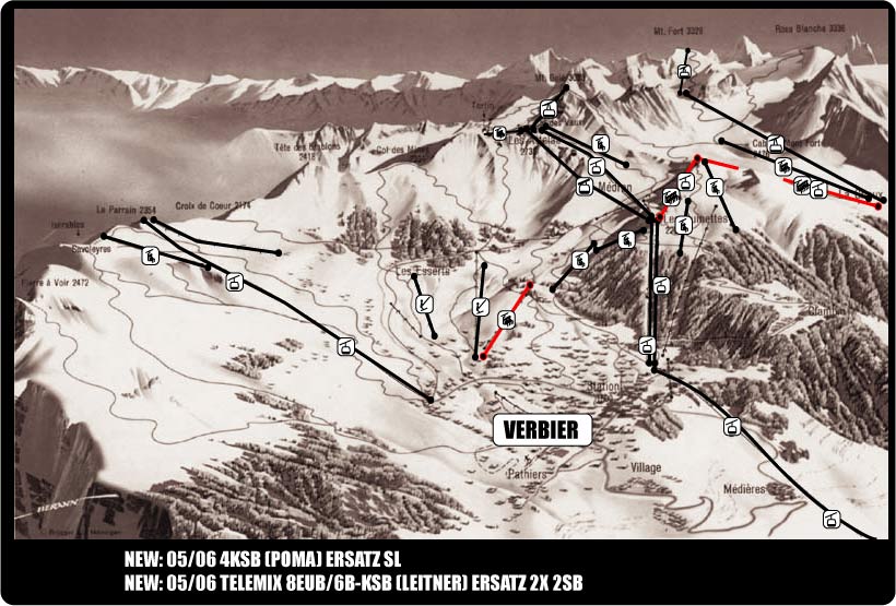 In den neuen Leitner-News unter http://www.leitner-lifts.com wird der Telemix in Verbier für 2005 angekündigt. Auch erste Zeichnungen finden sich in dem Bericht. Fragt sich nur, ob Leitner oder Poma die Bahn bauen wird.