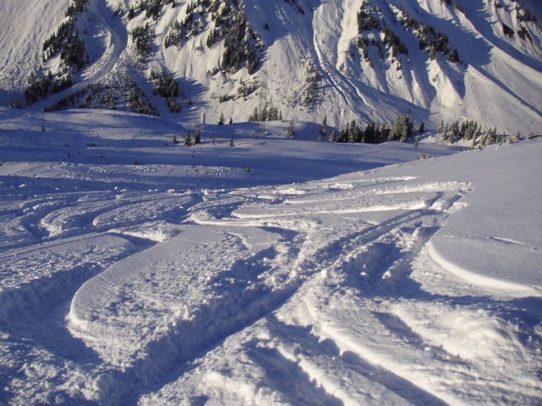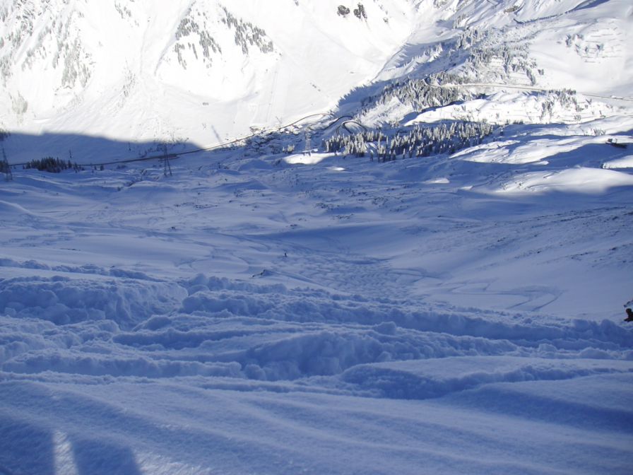 Etliche Lifte kein mal, Einmal bin ich für eine längere Strecke auf einer Piste (Alpe Rauz-Stuben) gefahren. (Ging nicht anders, sonst nur Tiefschnee gefahren
