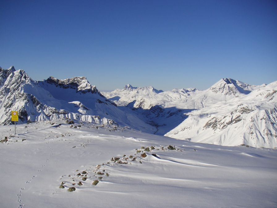 Am Morgen bis auf Valluga I/II, Vallugalift, Schindlergrat alle