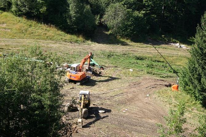 Pistenarbeiten 3. Dort wo der Bagger steht würde ich die Bergstation der Bahn Vitranc 1 machen.