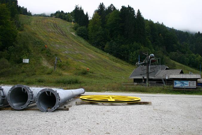 Wie bereits einige im Rateforum mitgekriegt haben, gibt es heuer in Kranjska Gora wieder eine Neuigkeit, wo ich mir nicht ganz sicher bin ob ich mich freuen soll oder nicht: der uralte ESL Vitranc 1 wird endlich ersetzt. Die Arbeiten wurden wieder einmal sehr spät begonnen, Baubeginn war in den ersten Septembertagen, man will aber trotzdem bis Mitte Dezember fertig sein. Naja, es sollte klappen, die Trasse ist eher leicht, die Bergstaion liegt auch nur auf etwa 1100 m, also ich bin bei diesem Bau optimistischer als bei der 4SB auf dem Kanin, die etwa um die selbe Zeit begonnen wurde.