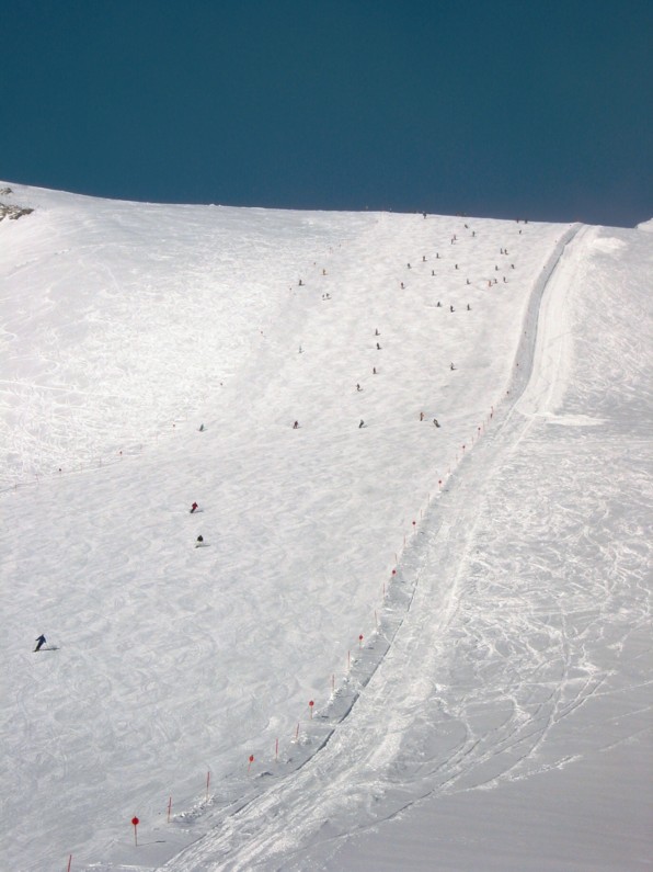 Die beiden Kaserer-Lifte und vor allem Kaserer 1 erschliessen sicher die schönsten und besten Gletscherhänge der Alpen. Die Kaserer 1-Versetzung war eine sehr gute Sache, der enge Bügel-Abstand schafft eine Menge Kapazität. Die traumhaften Abfahrten und Verhältnisse dort sind sicherlich das große Plus von Hintertux, während die Trainingsmannschaften an der GFW schon sehr viel Platz einnehmen.