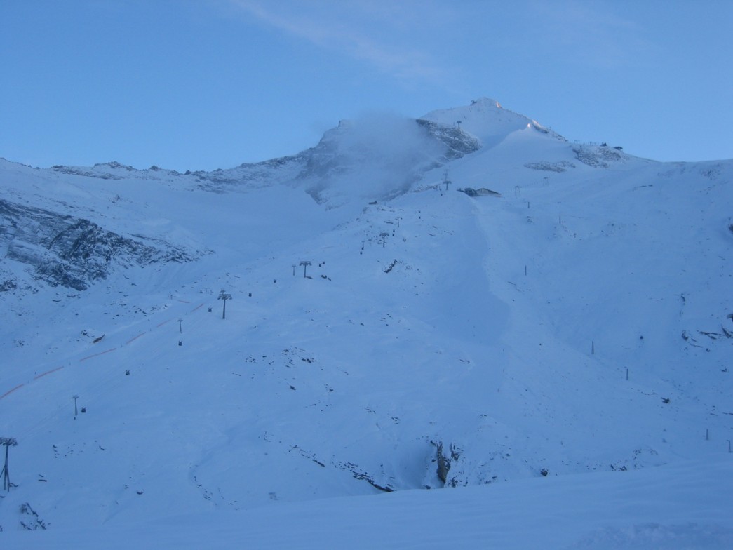 alle Abfahrten am Gletscher außer „Sonnenhang“, Ramsmoos-Abfahrt und Spannagelabfahrt inoffiziell (wird am Wo-E sicher aufgemacht, fertig beschneit)