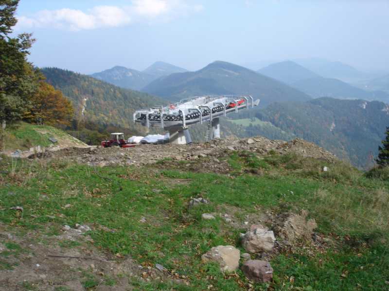 Bei einem Lokalaugenschein am 3. Mai 2005 habe ich festgestellt, dass die Sessel der alten Bahn bereits demontiert sind. Das Seil hängt jedoch noch. Im Wald ist bereits die neue Trasse abgesteckt. Außerdem wurden schon erste Schlägerungen durchgeführt.
