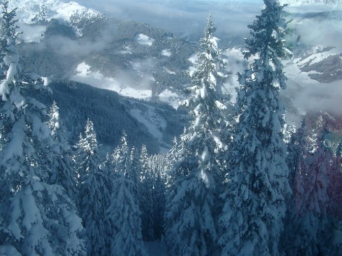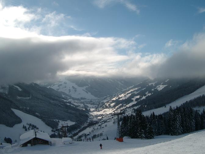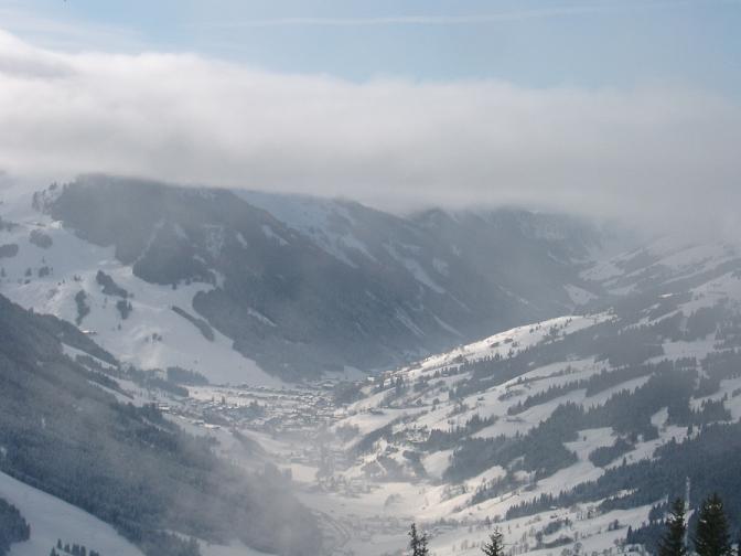 03.01<br /><br />Blick ins verschneite Hinterglemm vom Mitteregg aus. <br /><br />Sorry fürs Kamerabändchen vor der Linse