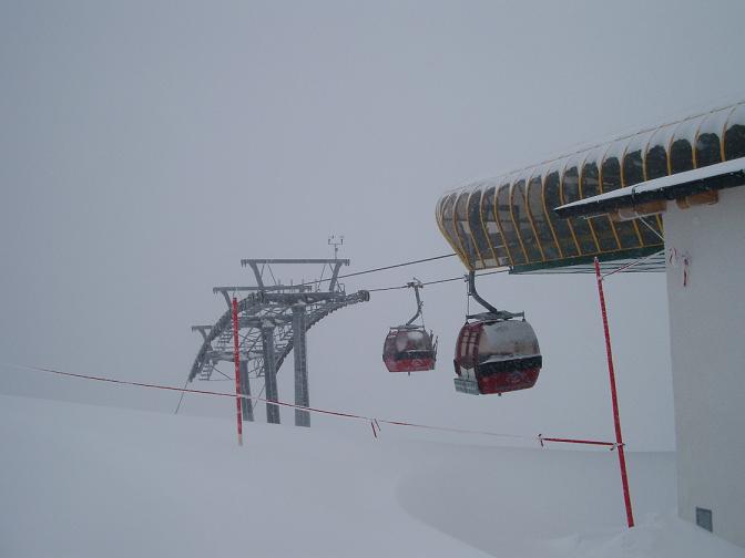 Bei ersten Mal wo, ich in der Gondel saß, guckten die Liftboys in der Talstation etwas verzweifelt auf den Kontrollbildschirm und dann gingen drei Mann hoch in den Bereich der Seilbahntechnick, was dort gemacht wurde weiß ich nicht. Nach 10 min ging es weiter.