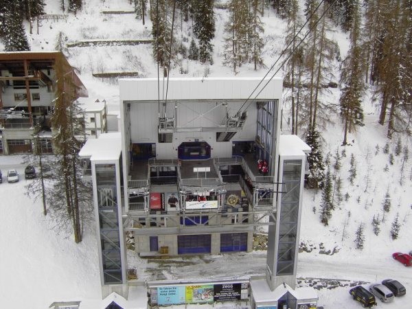 180DPB Twinliner Talstation von oben. Schon ein ganz schön großes Ding. Links und rechts an der Station sind Aufzüge für die Gäste.<br />Ganz links im Bild ist die Talstation der 80PB &amp;quot;Alp Trider Sattel&amp;quot;.