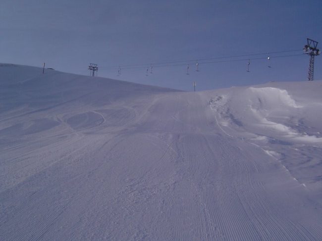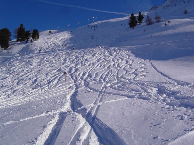 Piste 21 im Bereich Zeblas. Die Piste wurde gerade frisch gewalzt-an dem Tag gab's über Nacht ca. 50cm Neuschee.