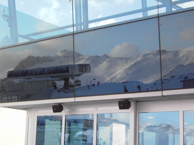Einfach geil!<br />Die Bergstation des 6Bubble Grat (vorne) sowie des 8Bubble Idjoch (rechts oben) und 6Bubble Greitspitz (halblinks oben) spiegeln sich im Restaurant Pardorama.