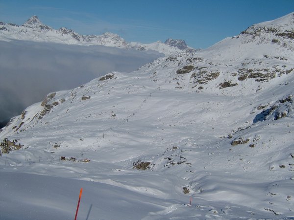 Conncection beetween Furtschellas and Corvastsch is open, juts a few stones on the top flat part of the Curtinella slope.