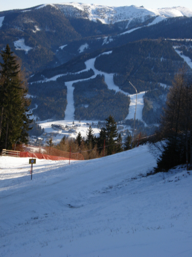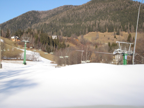 die schattigen Abfahrten Kaiserburg, Strohsack und Maibrunn zwar alle ausreichend beschneit, aber sehr hart (um nicht eisig zu sagen; und ich bin eigenltich ein guter Fahrer, der harte Pisten liebt...)