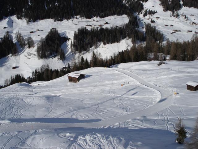 Die blaue Talabfahrt 2 "Rieder" wird an einer sehr übersichtlichen und flachen Stelle gekreutzt. Die Abfahrt hat auch nicht sonderlich viel "Verkehr"