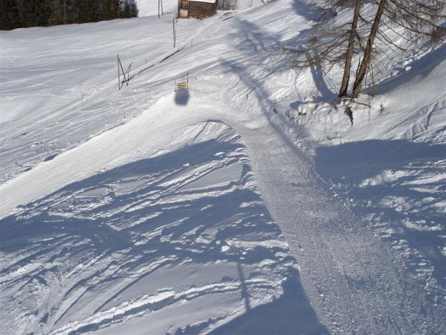 Man sieht auch auf den Fotos wie die Spuren der Tourenfahrer überall die Schlittelbahn kreuzen. ich hoffe einfach dass ich nie einen "auflade" der mir vor die Kufen fährt. Ausserdem werden immer wieder grössere Schnee- und Eisblöcke von den Tournfahrern auf die Bahn beförderd.