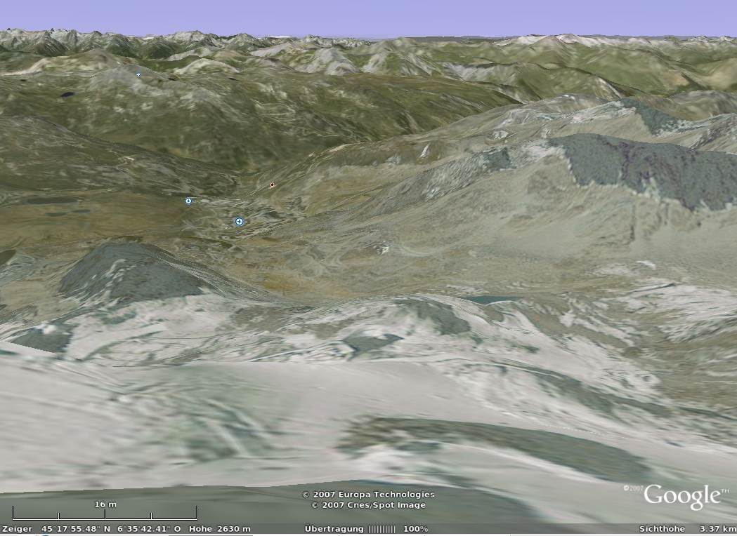 Die haben manche Gegenden hochauflösend, wo ich bei Google Earth schon lange drauf warte: u.a. Deutscher Alpenraum sowie Italien (Dolomiten etc.)