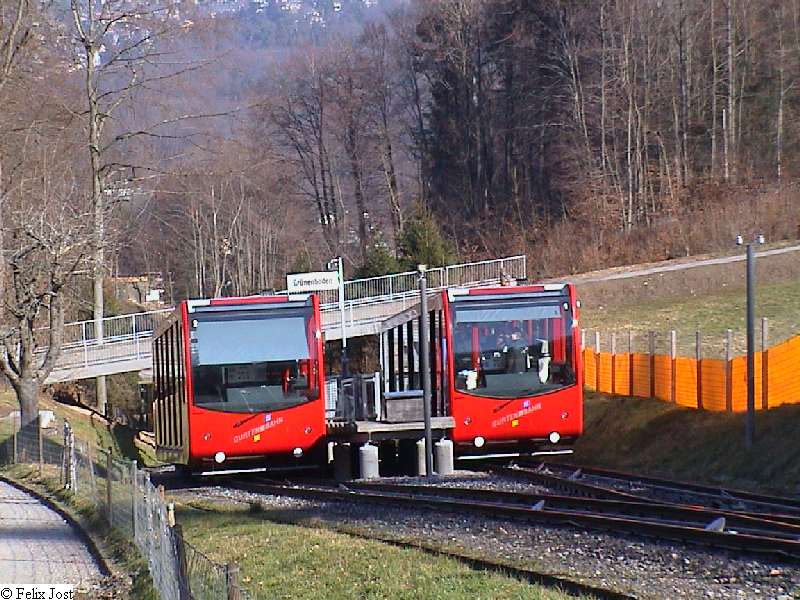 Kurz nach 11:45 traf die S-Bahn in Wabern ein. Da auch ein Gegenzug eingefahren ist, wurde es auf der Treppe vom Bahnsteig zur Talstation ziemlich eng. Offensichtlich war ich nicht der Einzige, der auf den Gurten wollte. Auch zum Parkhaus herrschte reger Verkehr. Die anderen Leute sind zielstrebig zum Eingang der Talstation. Ich wollte laufen und somit war mir die kleine Menschentraube egal. Im Gegenteil, die vielen Leute kamen mir sogar recht. Denn bei Grossandrang fährt die Bahn ununterbrochen und somit muss man an den guten Fotostandorten nicht lange warten bis ein Wagen kommt.