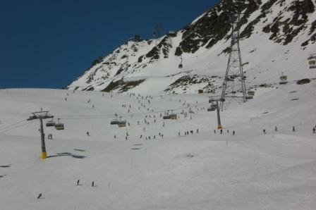 Klebepappe auf der Talabfahrt, zwischen 30-40 Minuten Anstehen an der Talstation der Margunsbahn.