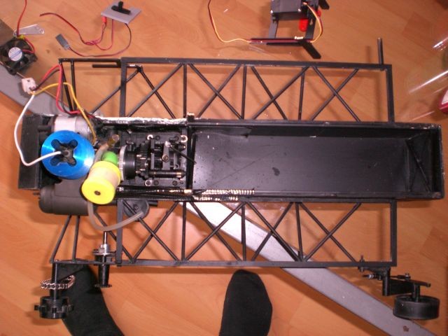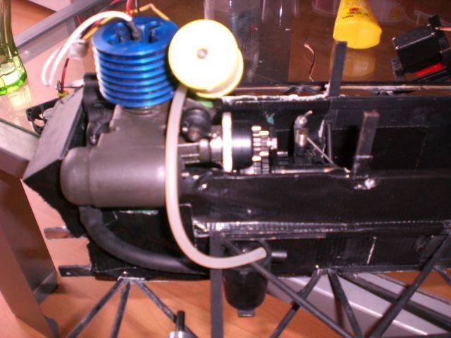 Im Rumpf sind sämtliche Antriebskomponenten wie Motor, Getriebe, Differential und Bremsen untergebracht. Ebenfalls Tank und Akku für die Beleuchtung (also anders wie im erstenModell)