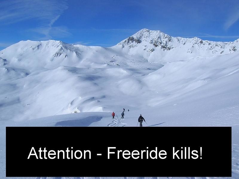 Nachdem wir uns ja immer alle gegenseitig warnen wie gefährlich das Fahren abseits der Pisten ist, würde ich vorschlagen wir führen eine verbindliche Kennzeichnung für Freeridefotos ein. Änlich der Kennzeichnung der Zigarettenpackungen.
