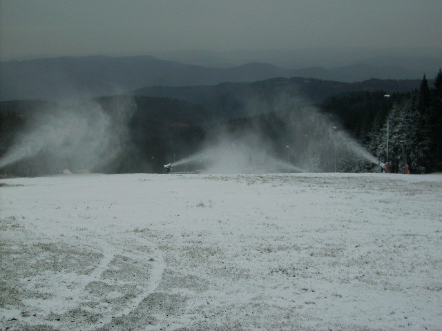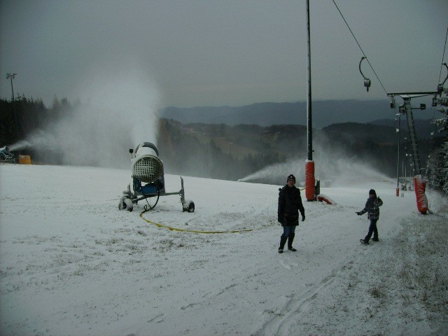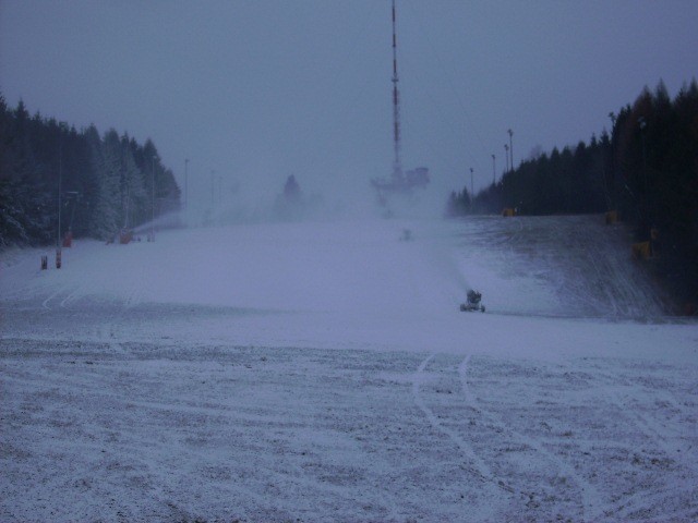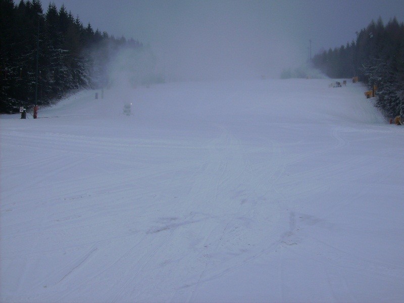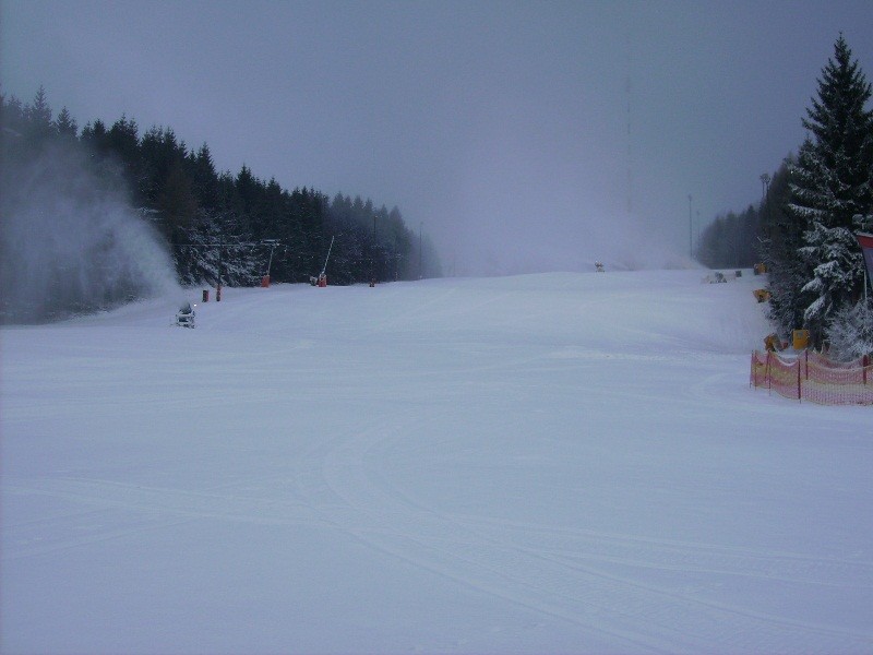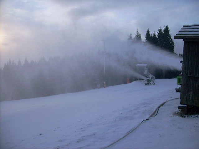 Seit gestern wird mit 6 Schneekanonen beschneit. Zur Zeit -2 Grad und 1cm Naturschnee!