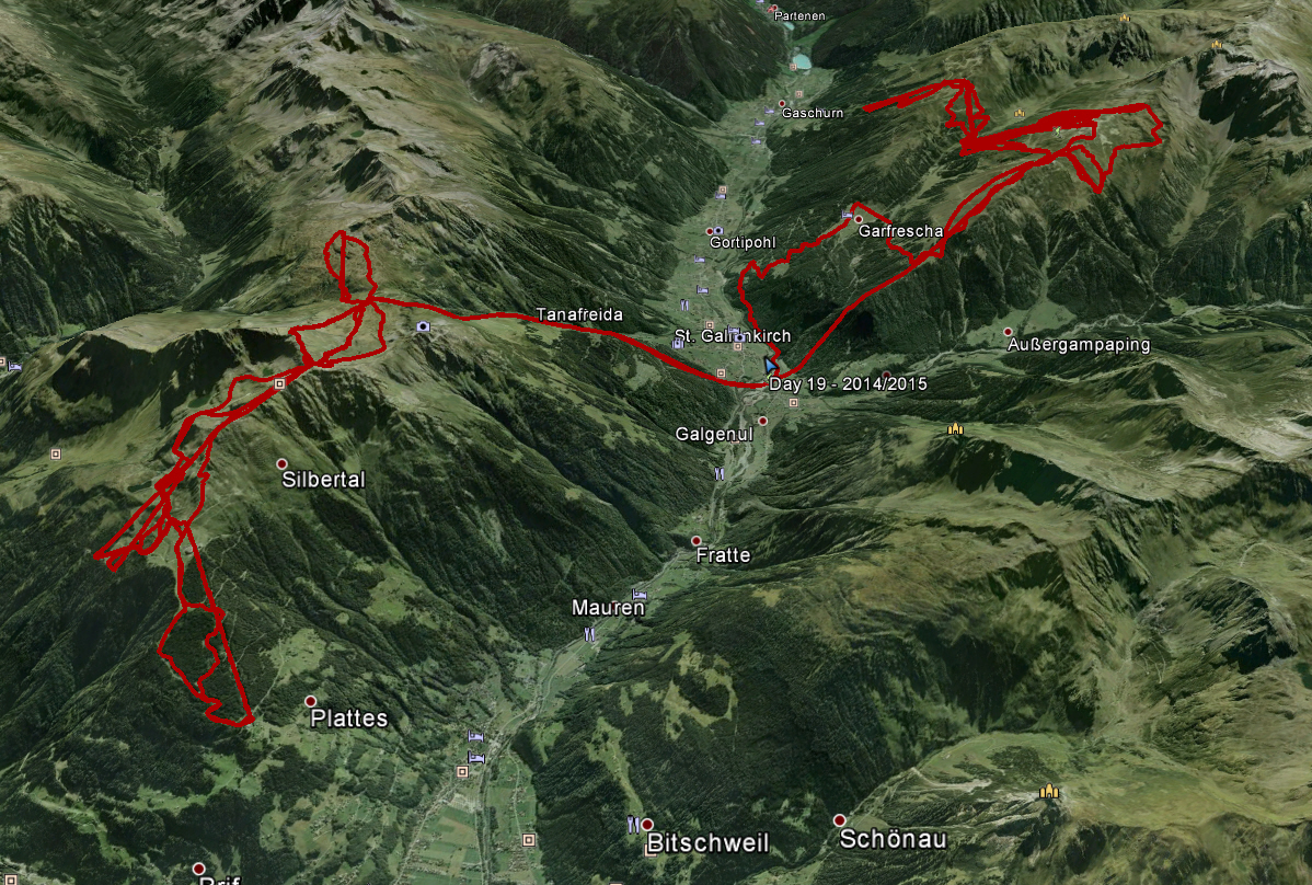 Auf der Nova Seite waren alle Pisten noch im besten Zustand und wir konnten den Tag nach 14200 Höhenmetern dort ausklingen lassen. Insgesamt hat mir das neue verbundene Skigebiet sehr gut gefallen, hier komme ich auch gerne mal ein Wochenende her. Einzige Minuspunkt heute war der Mitarbeiter an der 6KSB Rinderhütte Bahn, diese sollte bist 15:45 Uhr laufen. Wir standen um 15:45 dran und der Zeiger war auch noch an der Station auf 15:45, hoch gelassen wurden wir aber nicht mehr. Hier hätte ich doch ein wenig mehr Kulanz erwartet, bzw. offiziell hätte er uns noch hoch lassen müssen.