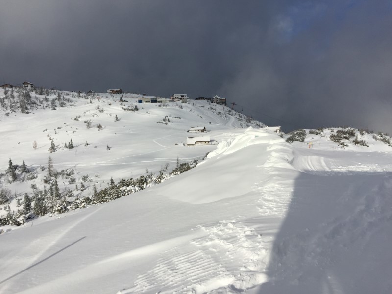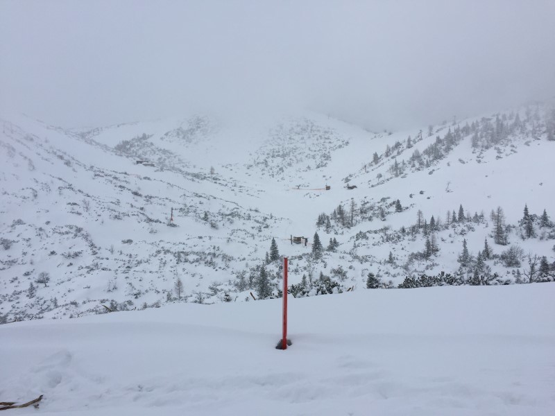 Steinkogel und Edeltal haben Schnee aber vermutlich zu wenig um zu öffnen. 2 Versuche "von oben reinzuschneien" reichen da auch nicht aus. Heumahdgupf sowieso alles abgeblasen.