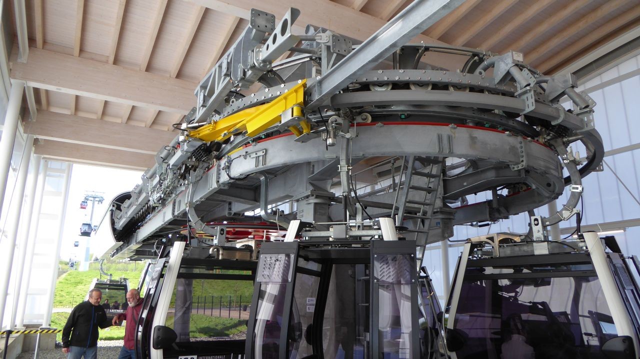 Die Bahn ist mittlerweile so gut wie fertig, Kabinen hängen schon seit Juli am Seil. Es laufen noch letzte Tests und Einstellungen sowie die Begrünung der Dächer. 2 Bilder gibt es hier, eine Zeitrafferaufnahme vom Bau hier.