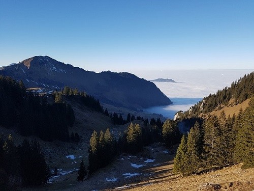 Auch der erste Eindruck, oben am Aengi, war schön: