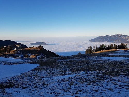 Heute kam der Föhn nur kurz um die Ecke. In Altdorf 9° bei 50 km/h, hier liegt der Schnee noch. Kaltluftsee sei Dank. Wenigstens der Optik wegen.