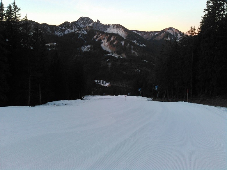 Gestern Abend fiel in Schliersee noch Regen gefolgt von Schnee gefolgt von Regen, daher waren wir nicht allzu optimistisch, was die Bedingungen auf den Pisten anging. Dazu noch der vorhergesagte Sturm... Was soll ich sagen: Der Tag war super.