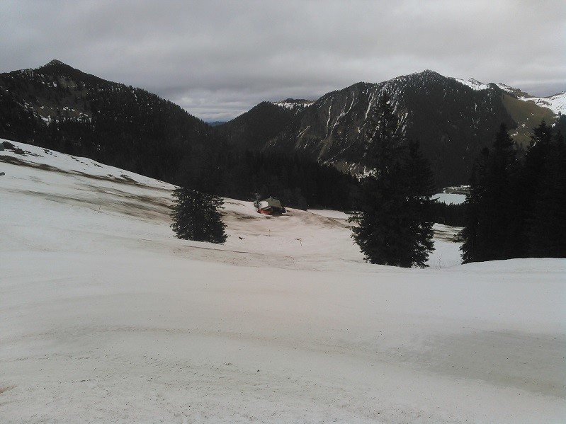Der Regen hat den beschneiten Pisten nicht viel angetan. Osthang etwas braun, aber der nächste Schnee ist in Sicht. Grünseeabfahrt sah garnichtmal so schlimm aus wie erwartet. Leider gemeiner Bruchharsch, hab mir die Abfahrt erspart. Die zerissene Beschneiungsleitung an der Sutten wird gerade repariert, bzw es wird versucht das Leck zu finden. Piste ist in dem Bereich etwas schmaler. Leider keine Bilder, Akku alle, aber da es frei geschoben war, war es mal schön zusehen wie stark die Piste wirklich ist. Sollten im Schnitt 50cm sein.