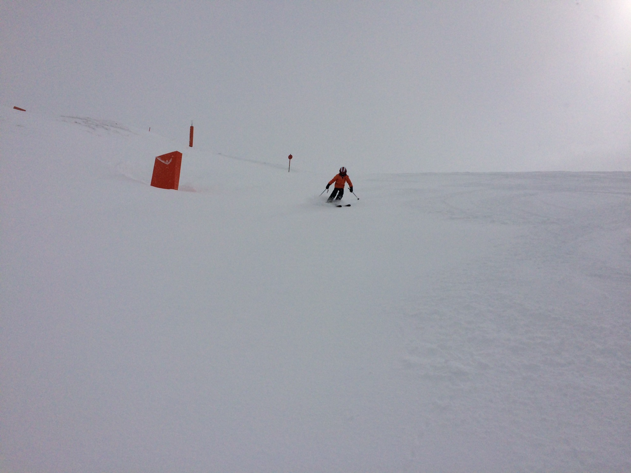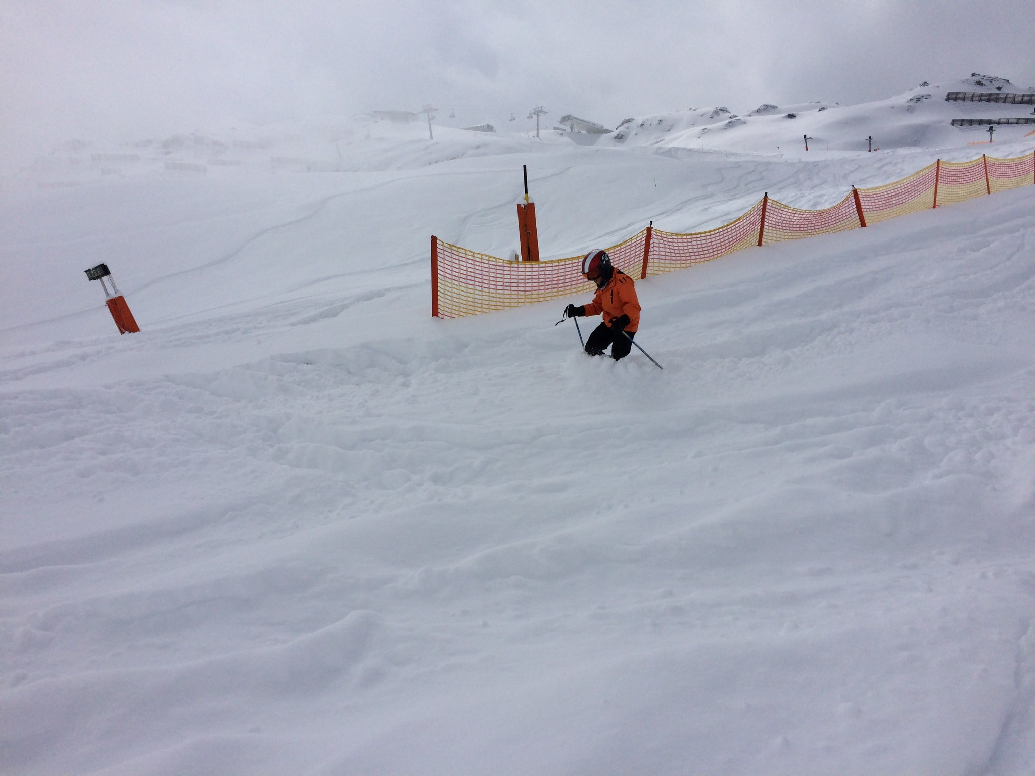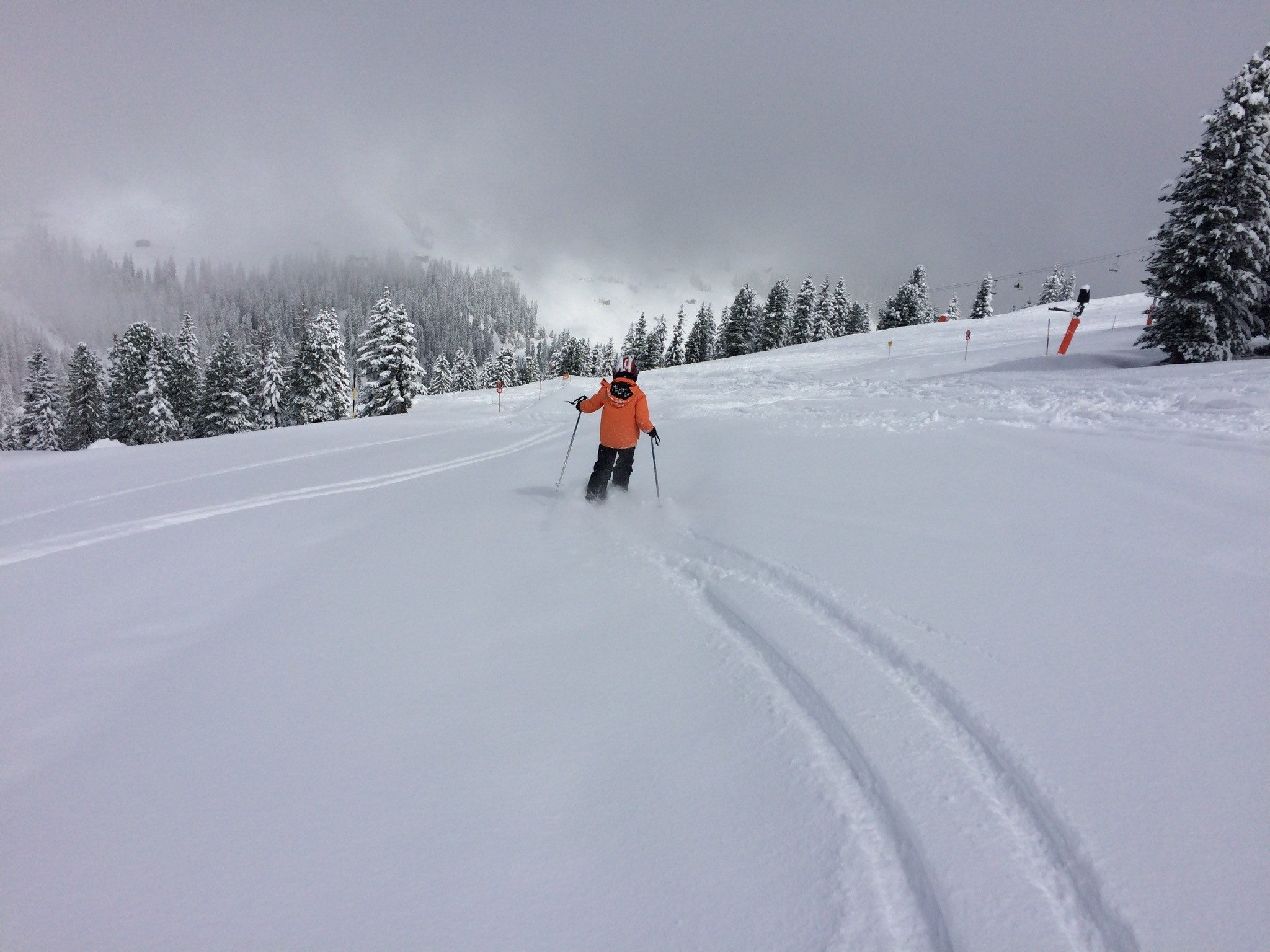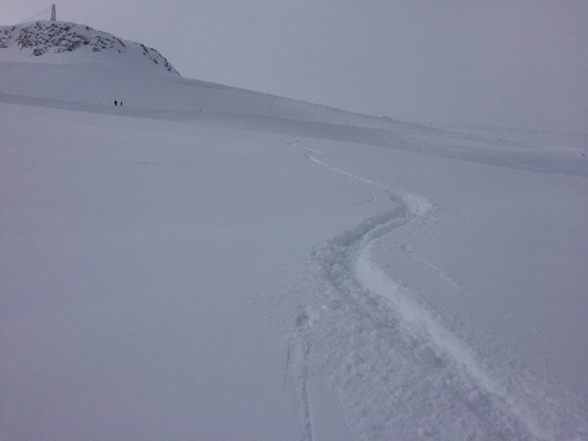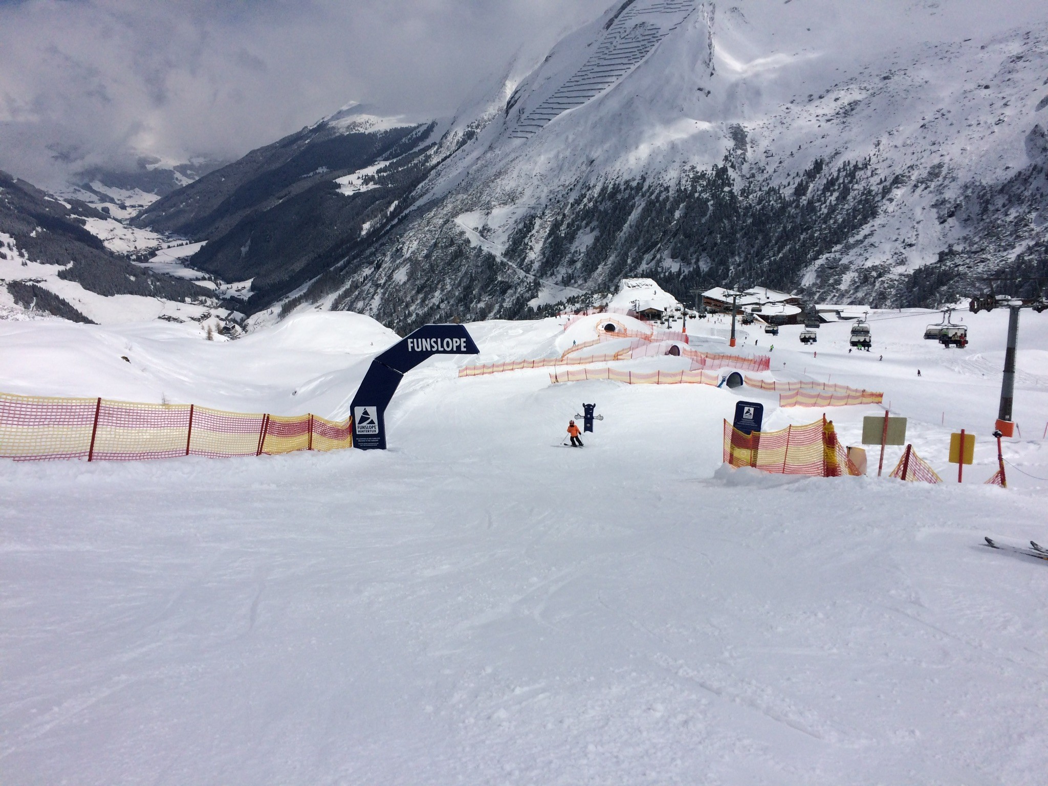 Der frühmorgendliche Blick aus dem Hotelzimmer verhiess noch nichts Gutes, aber Winter! Bei der ersten Abfahrt zur Sommerbergalm um 9 Uhr hatten wir die Piste für uns alleine. Ein Traum! Die nachfolgende war dann schon nicht mehr ganz so perfekt und auch nicht mehr ganz leer: Danach wagten wir uns etwas weiter hinauf, in der Hoffnung, dass es den Nebel lichten würde. Meine Lieblingspiste am Kaserer war noch nicht ganz nebelfrei, aber die Bodensicht war gut, um sie zu geniessen. Zwischendurch durfte ich auch mal einen kurzen Powderrun geniessen: Auch am Tuxerjoch kam und ging die Sonne in kurzen Abständen. Ski-chrigel-junior gefiel natürlich der Fun-Slope besonders: Das Wolkentop war einfach etwas zu hoch: Schlegeis auch um 14 Uhr noch völlig frisch präpariert. Eine Wucht. Den Genuss musste man aber mit einer eiskalten und ewiglangen Sesselbahnfahrt dafür bezahlen. Hier wünschte ich mir eine Haube. Und ski-chrigel-junior bestand auf einer Aufwärmpause in der Gletscherhütte. Die war offen, aber völlig verwaist. Kein Mensch an Theke oder Küche, leer. Wir waren 15min dort, nix rührte sich. Komisch. Nach zwei weiteren Fahrten an der Lärmstange 2 resp. der Kaserer-1-Piste... ...und der Abfahrt über die Piste 2a, die sich etwas besser hielt als die 2... ...löste ski-chrigel-junior dann den Deal ein: Für diese zwei Kasererfahrten, die er eigentlich nicht mehr mochte, gab es zwei Rodelbahnfahrten: