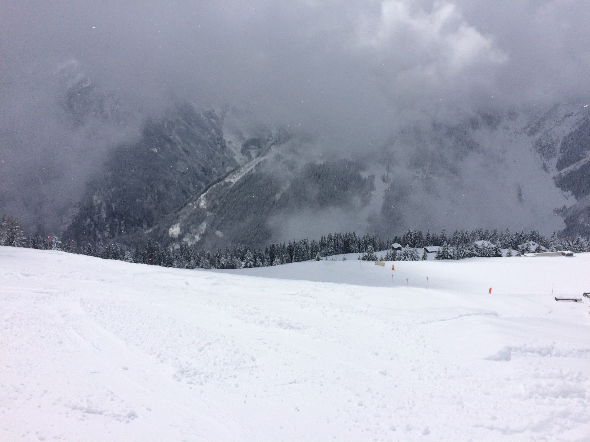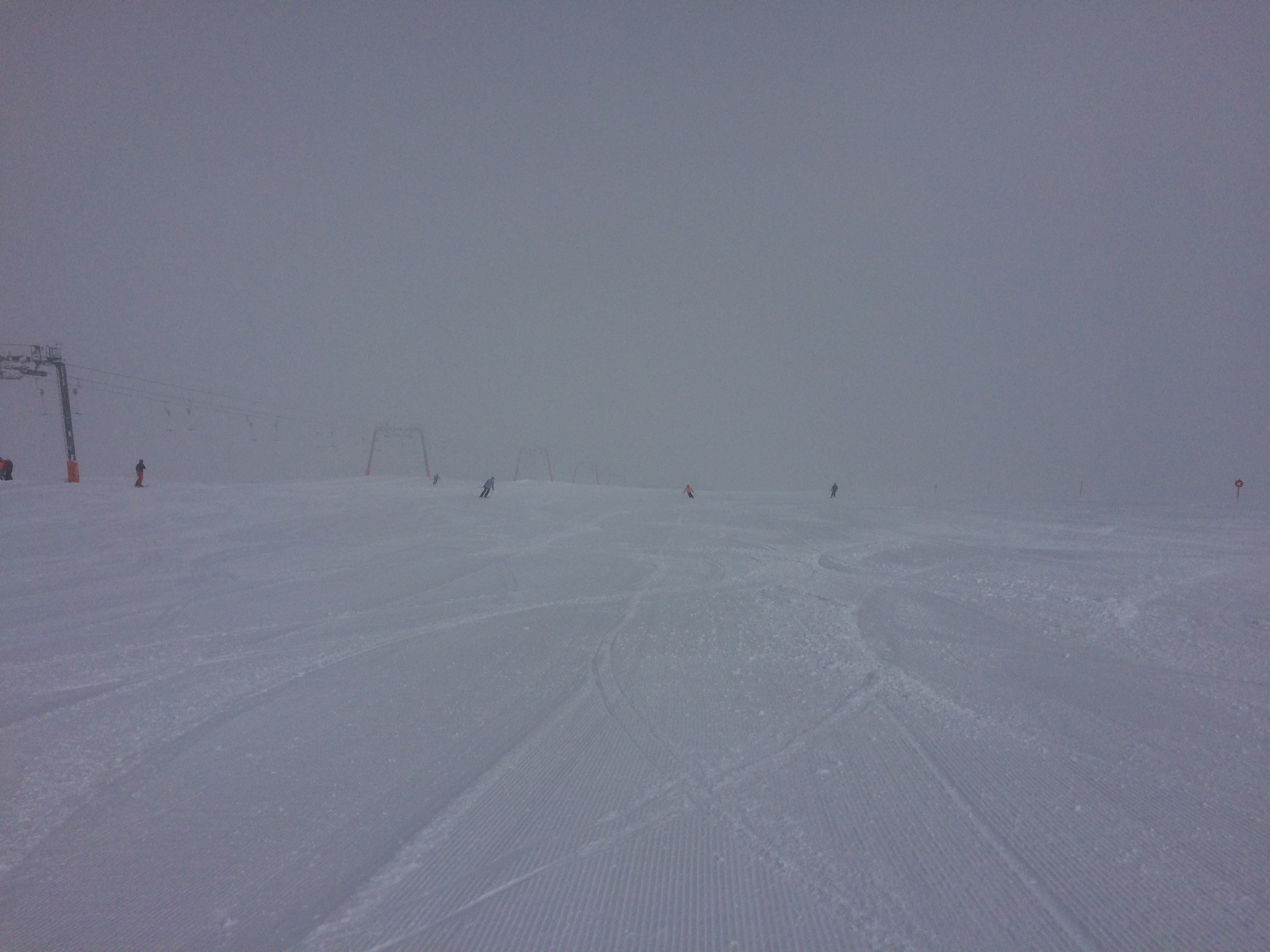 Seit 13.30 Uhr gibt es kaum mehr Aufhellungen, je nach Piste ist die Sicht mehr gut. Und fotogen sowieso nicht.