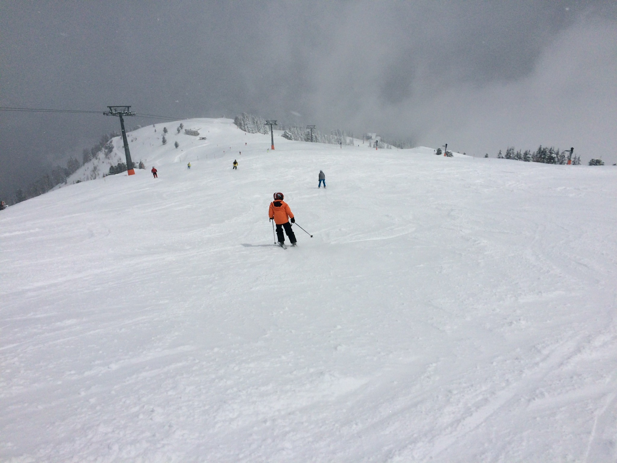 HauptParkplatz unten ist voll! Etwa ähnlich voll wie Mitte Dezember - aber halt bis 1300 klar bessere Pisten. Perfekter Tag.