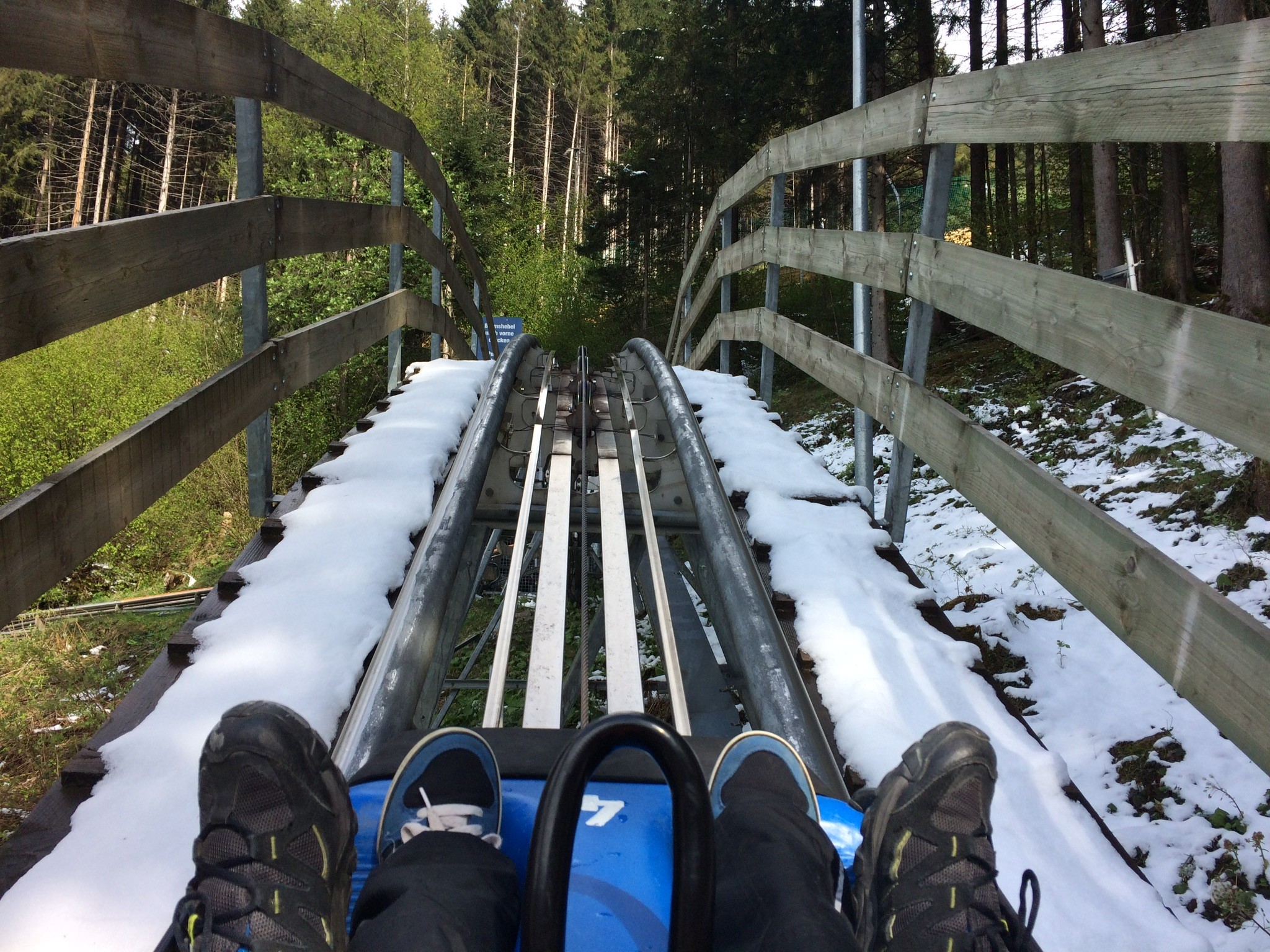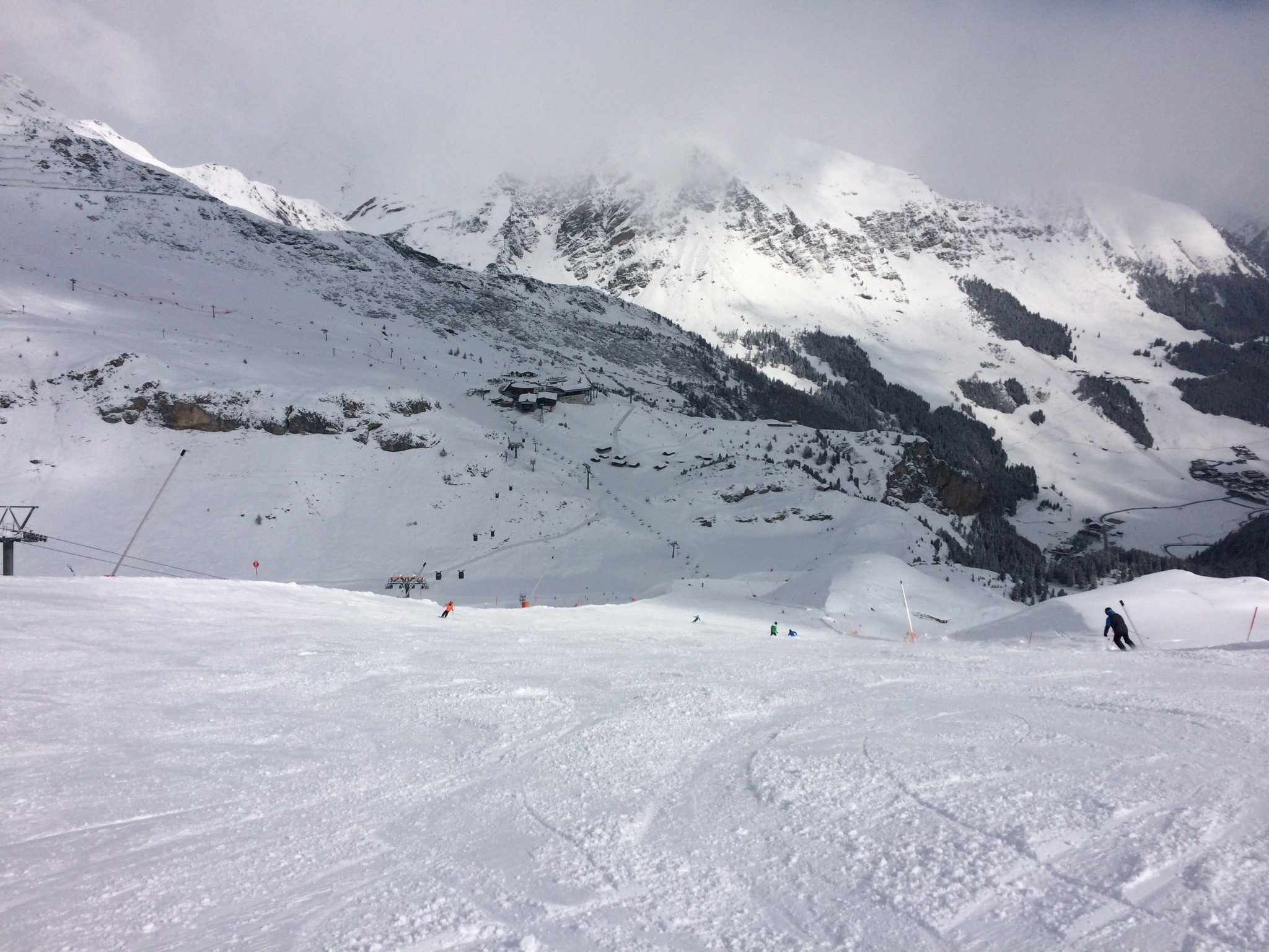 Die Abfahrt zur Talstation der Dorfbahn hätten wir sein lassen sollen. Unten sehr grenzwertig. Edit 14:30 Uhr: