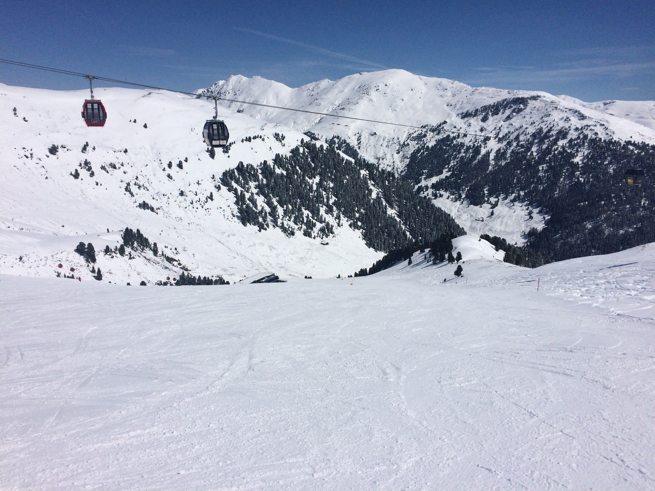 Auf der Rastkogelseite war es ganztags völlig leer, manchmal nahezu gepenstisch. Auf der Penkenseite war etwas mehr los, aber auch sehr wenig.