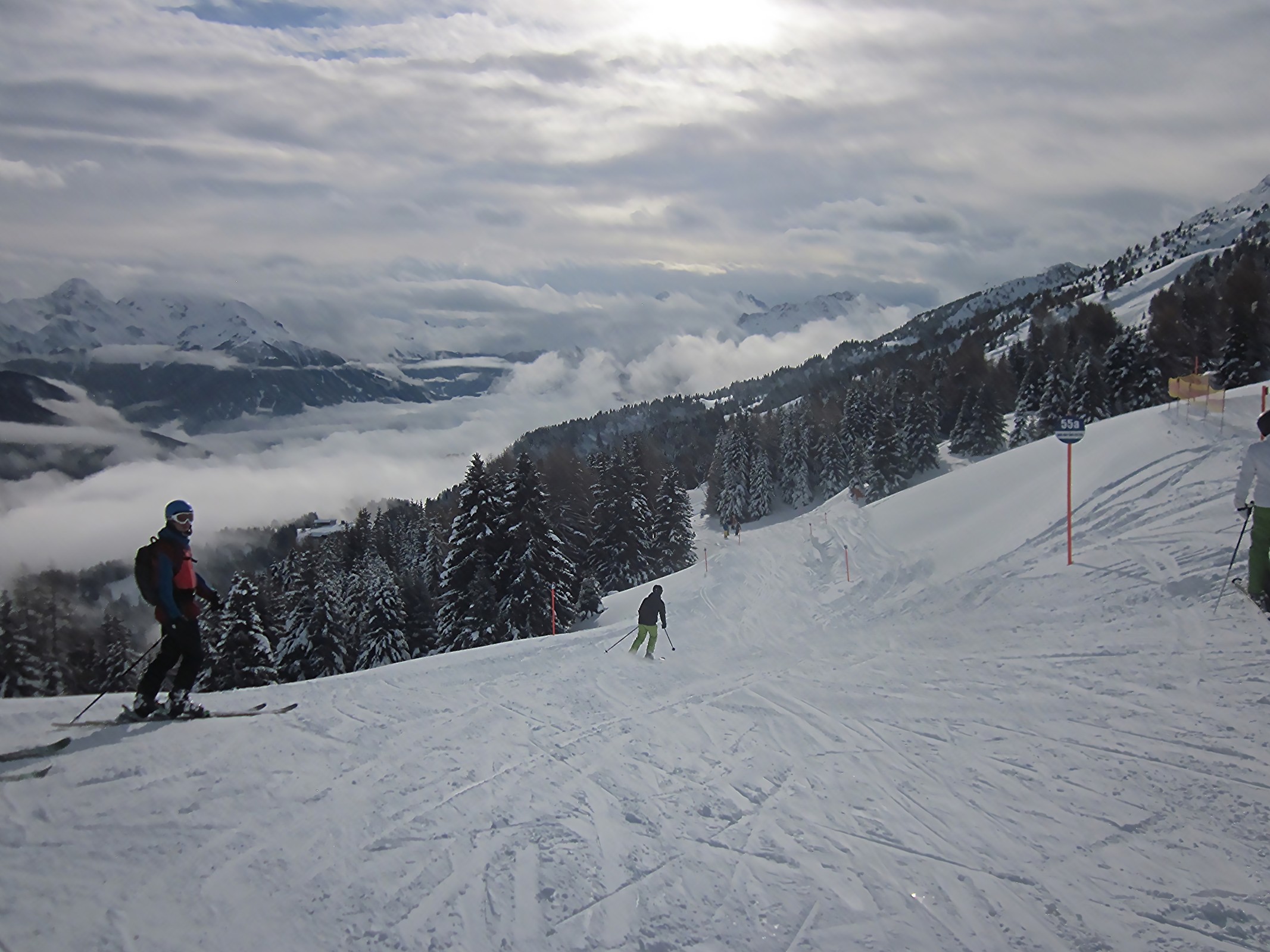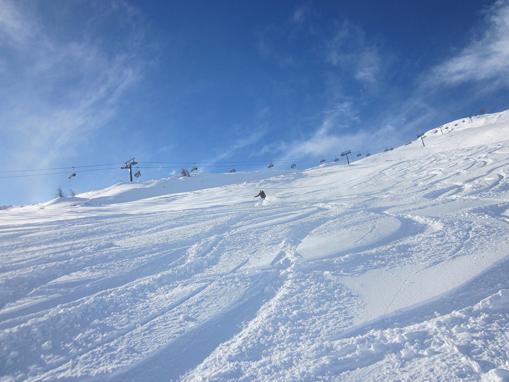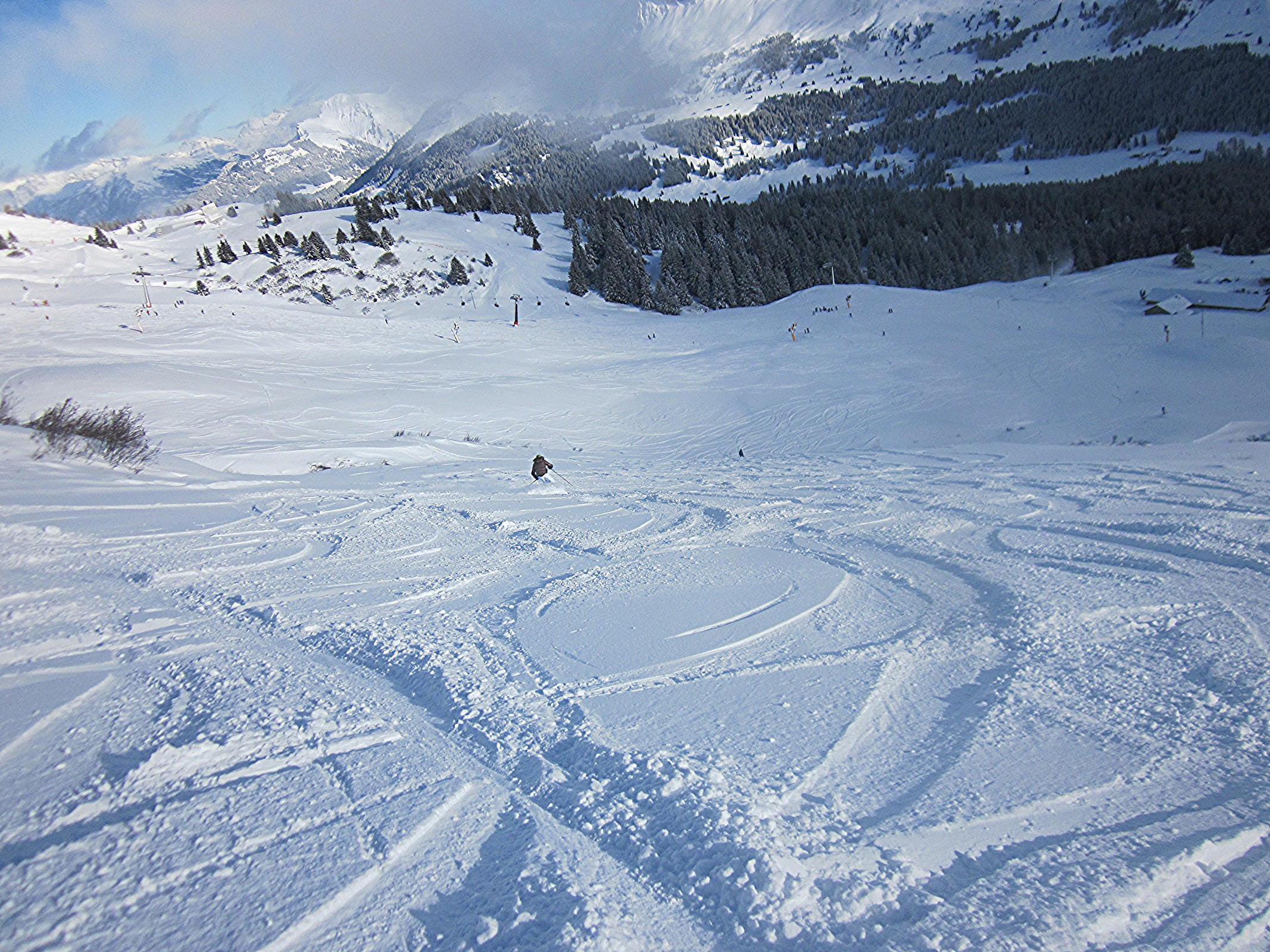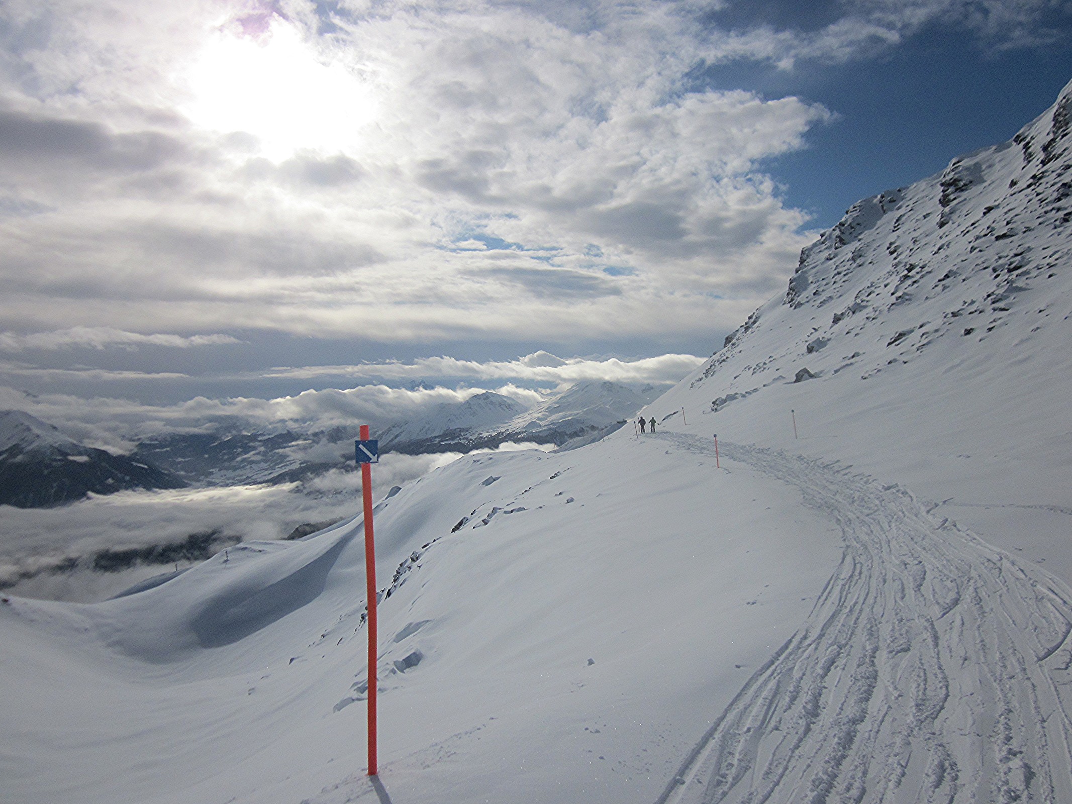 Um 14 Uhr fuhr ich zur Aroserseite, die größer wirkte als auf dem Pistenplan. Leider war das Gebiet schon grösstenteils im Schatten:
