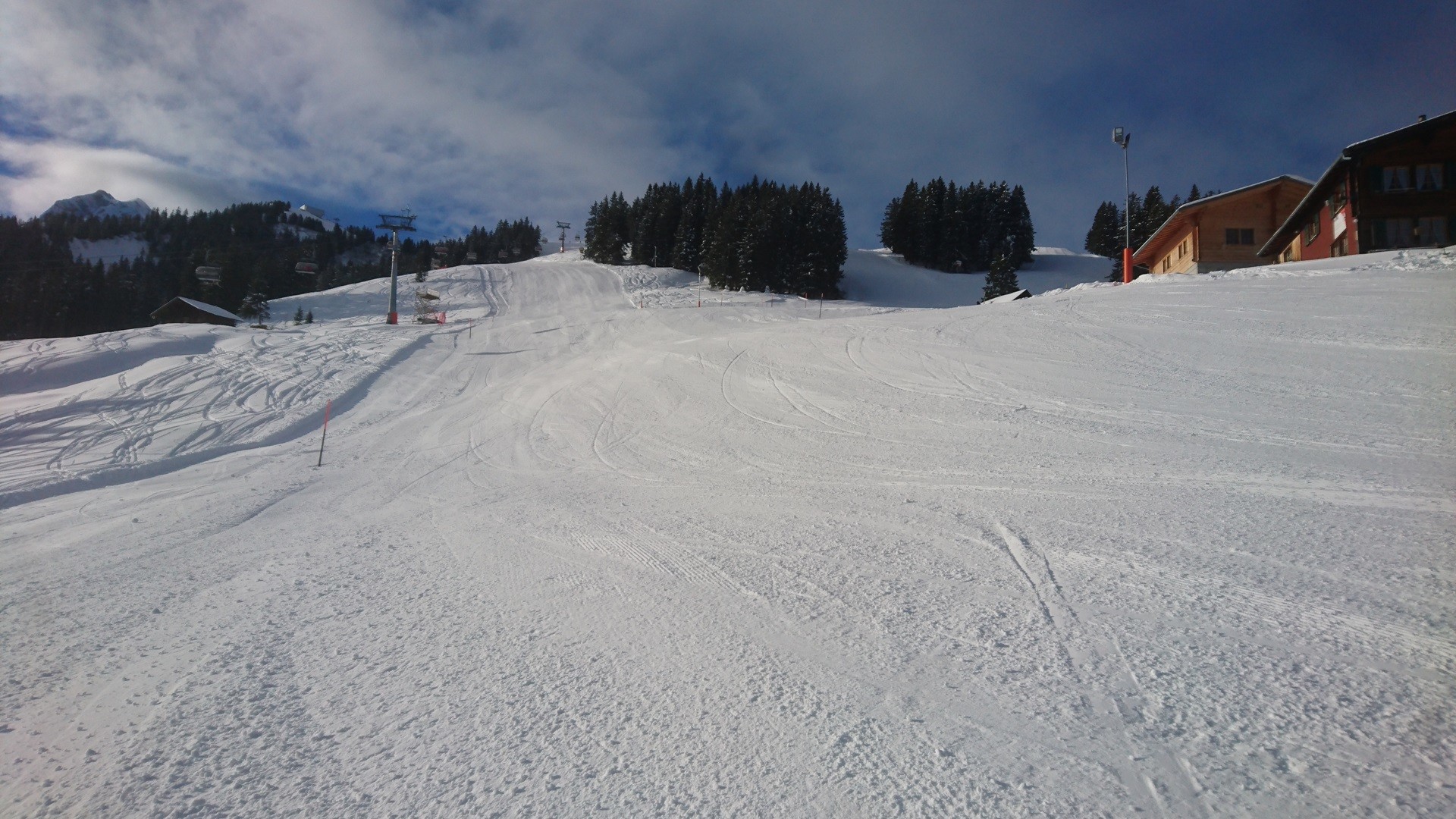 Wieder am Höchsthorn unterwegs. Die rote Piste ist leider extrem hart, teilweise eisig. Schade, die habe ich letzten Winter anders erlebt