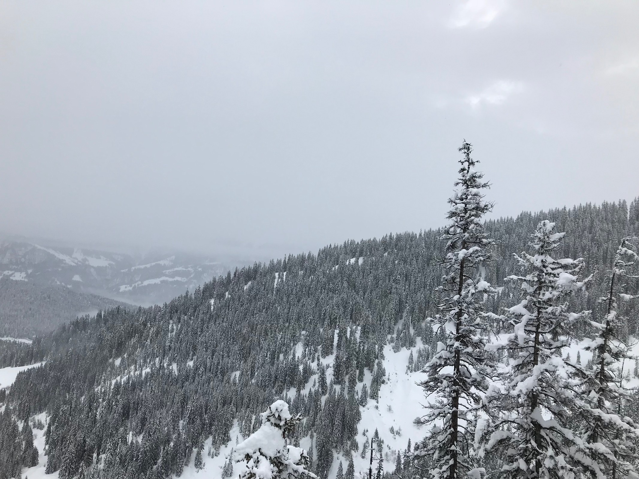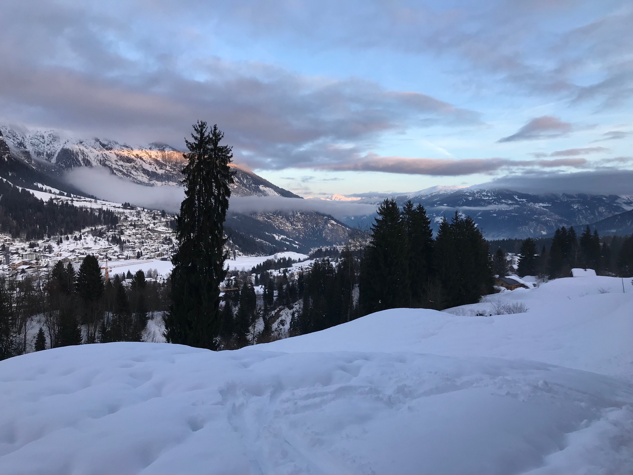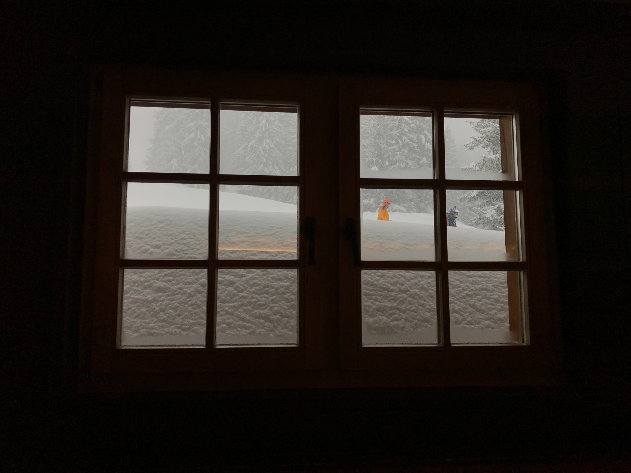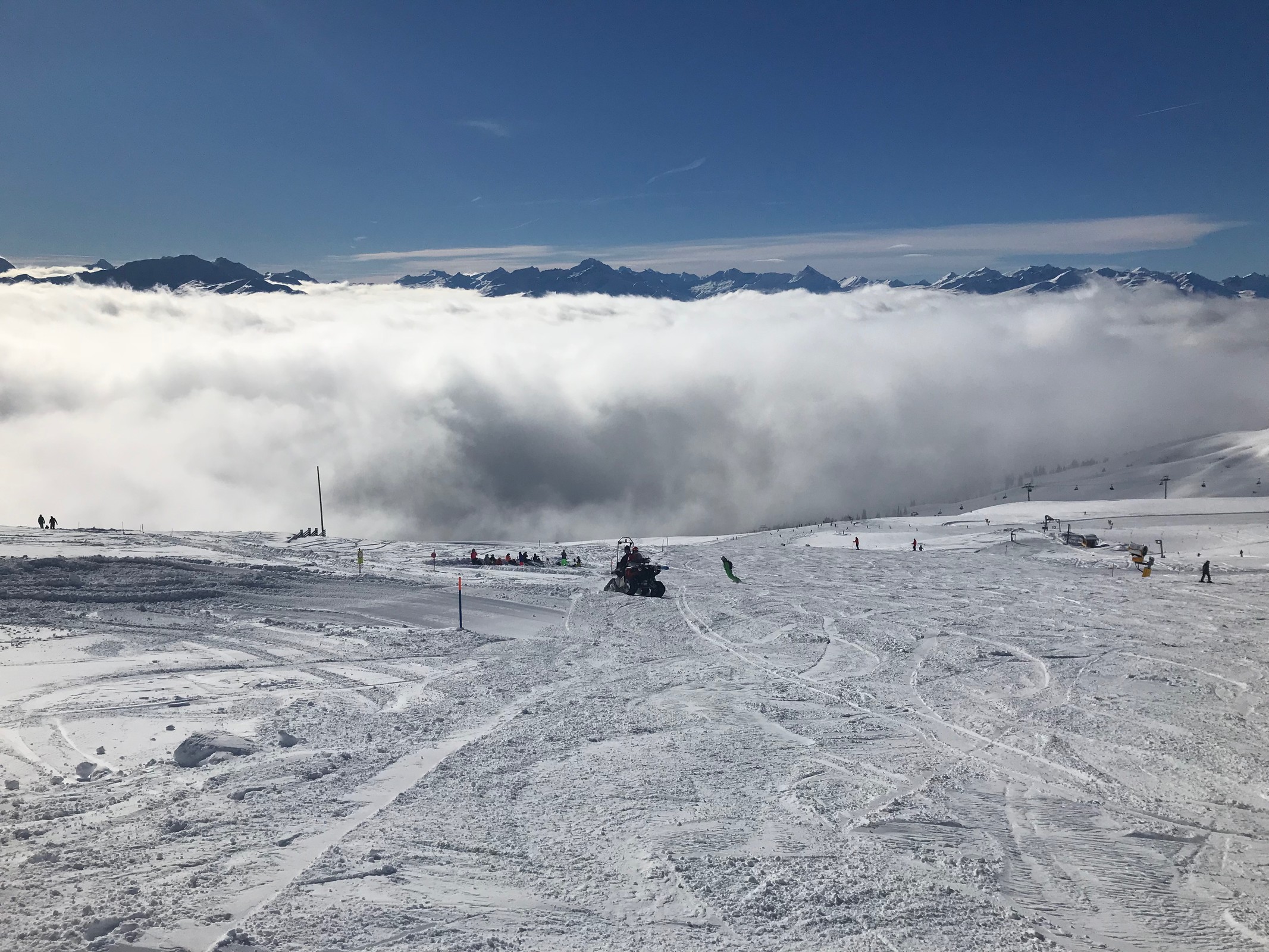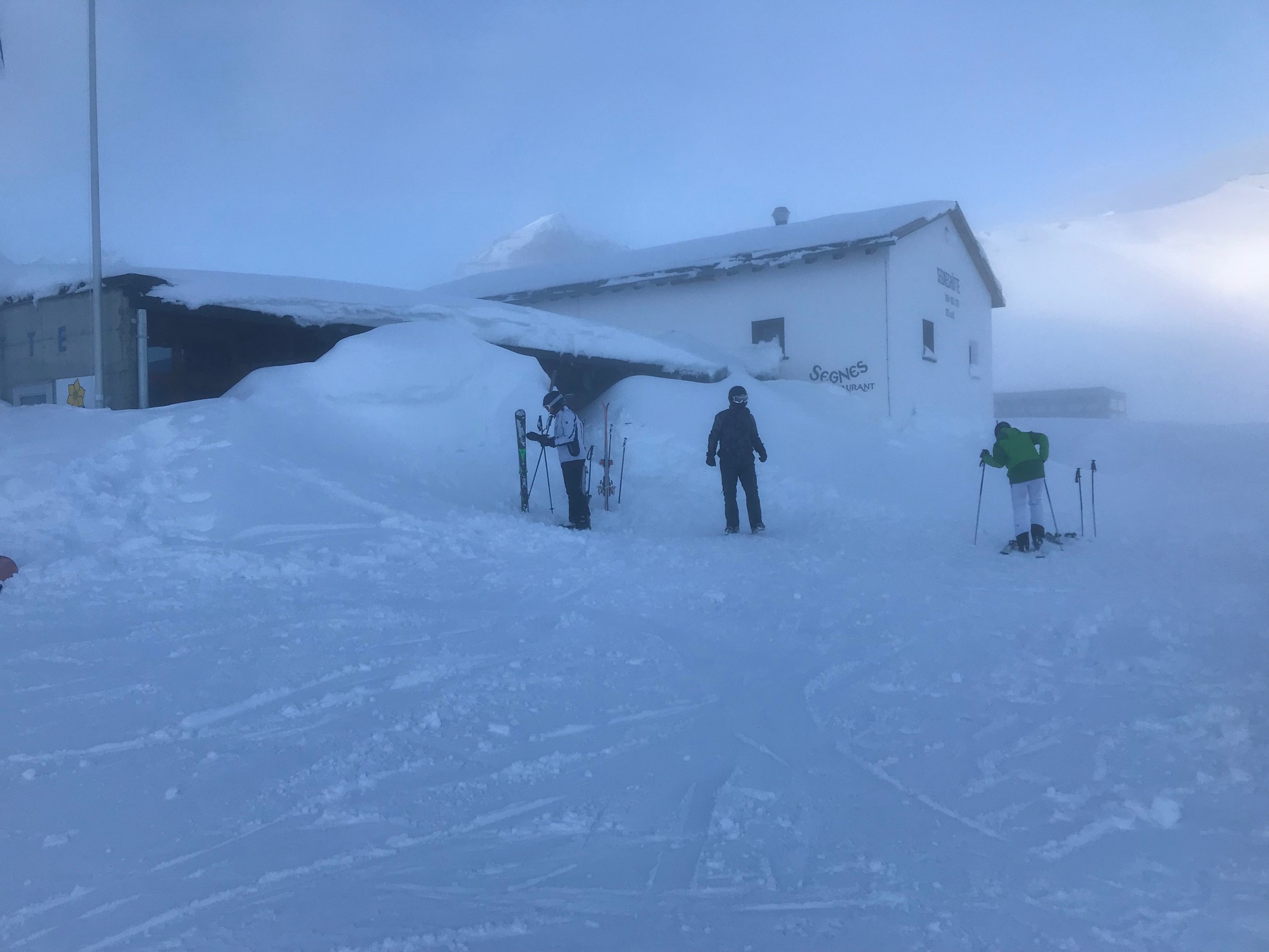 Montag war dann auch nog ein grauer Tag und wieder wenige Lifte geöffnet. Leider auch Regen im Dorf. Trotzdem könnten wir wieder ein paar Stunden skifahren als es rund Mittag ein paar Stunden trocken war.