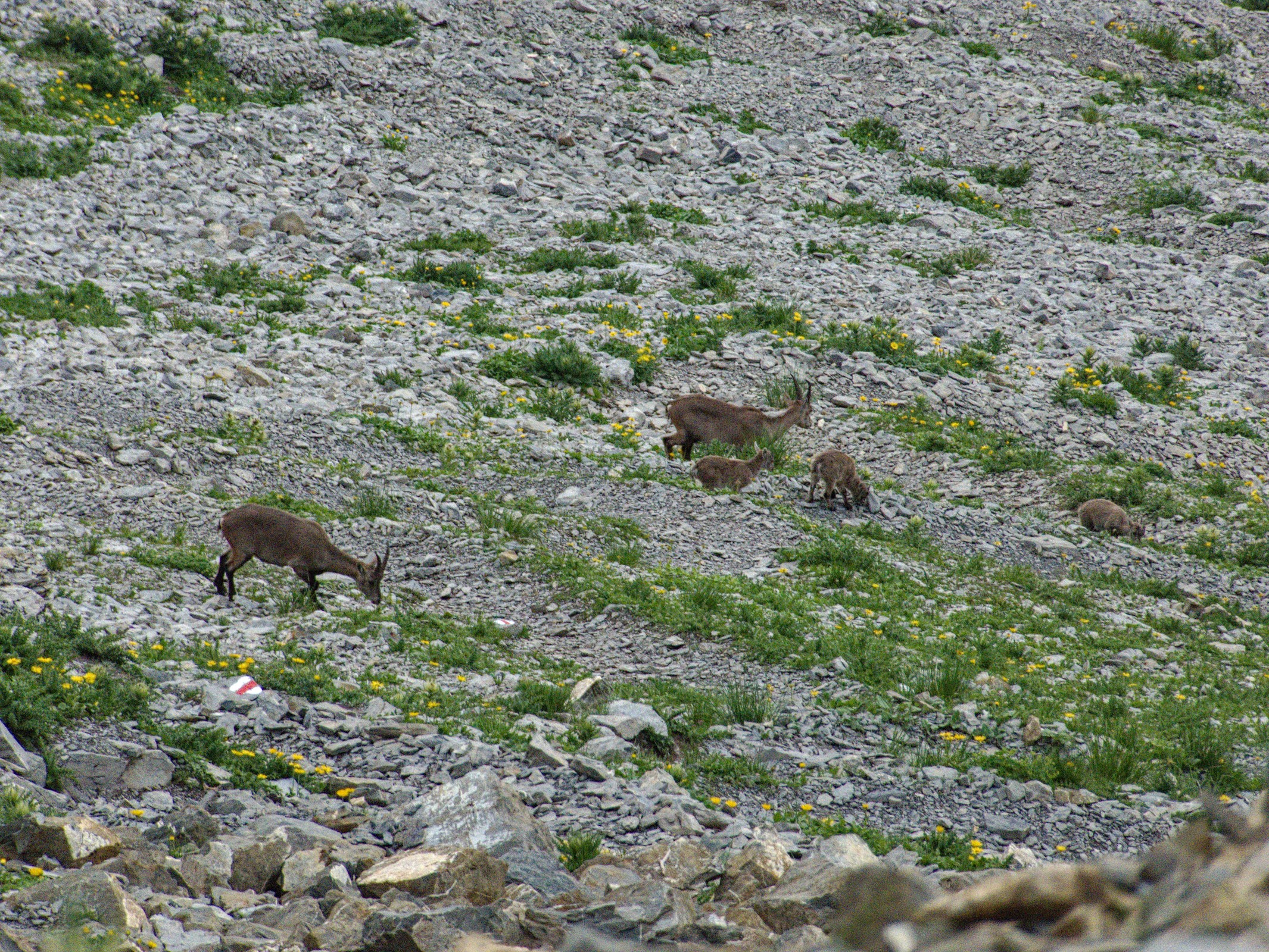 Steingeissen mit ihren Jungtieren.