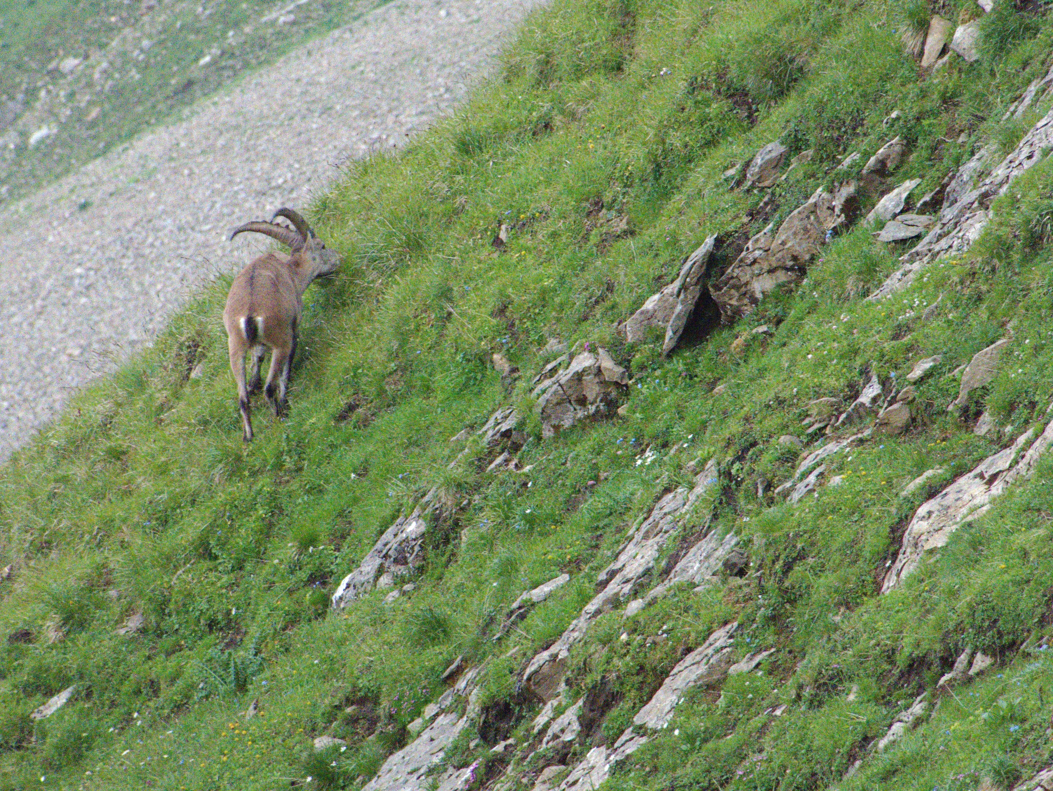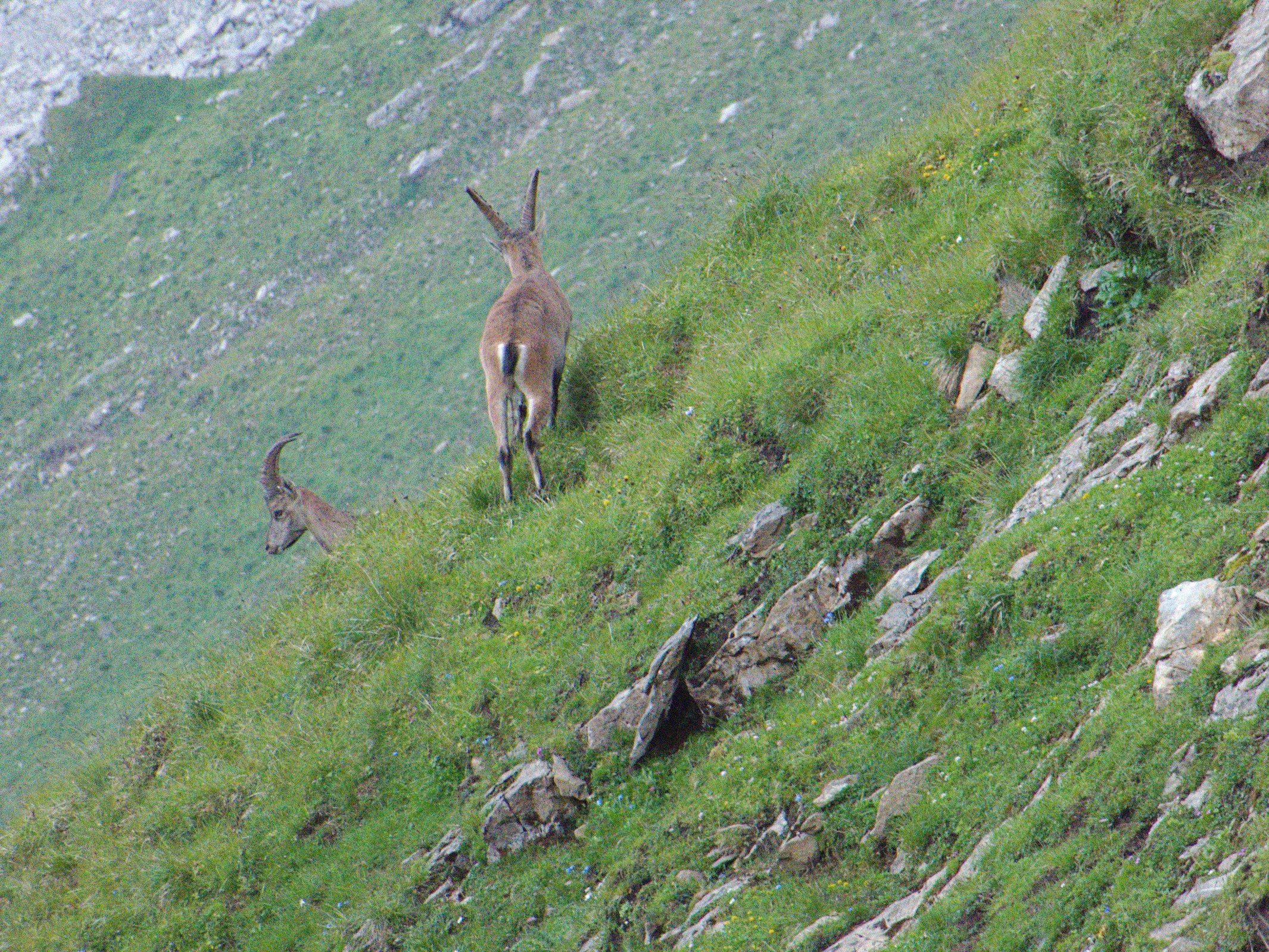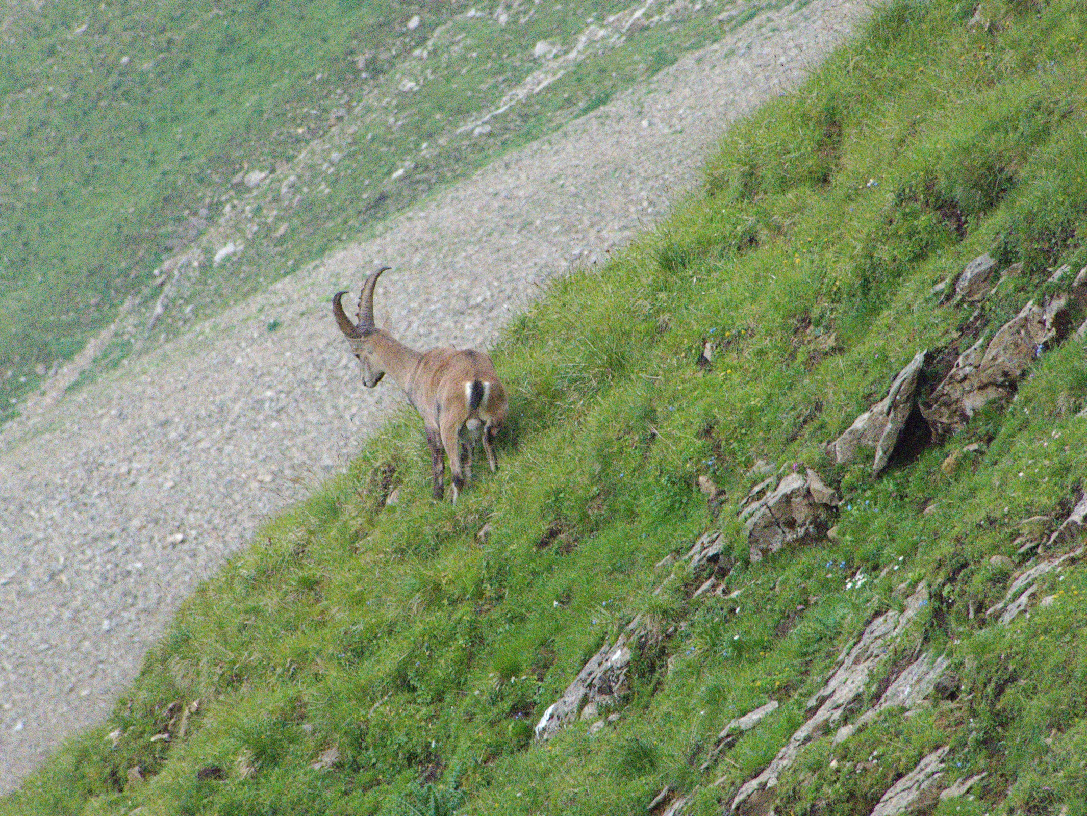 Am 24.07.2018 fuhr ich mit der Familie dank eines Geburtstagsfest auf das Brienzerrothorn. Wir übernachteten oben und genossen die prächtige Aussicht. Als am Abend der Grossteil der Leute mit der Bahn runter fuhren, zeigten sich die Steinböcke und Gämsen. Die verstecken sich den Tag durch vor den Massen.