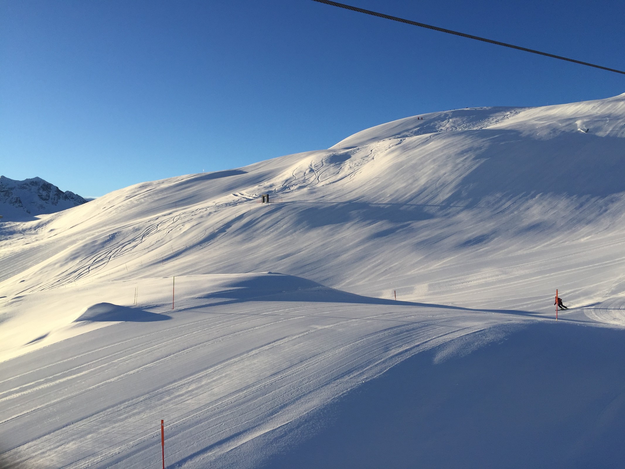 Gegen Mittag entschied ich mich Corviglia zu verlassen und noch einen Abstecher zum Corvatsch zu machen. Dort waren es ähnliche Verhältnisse. Leider aber nur ein kleiner Teil des Gebietes offen.