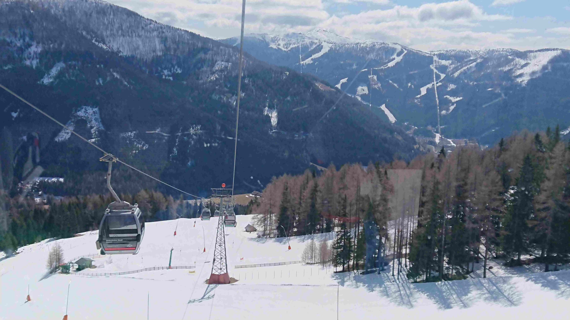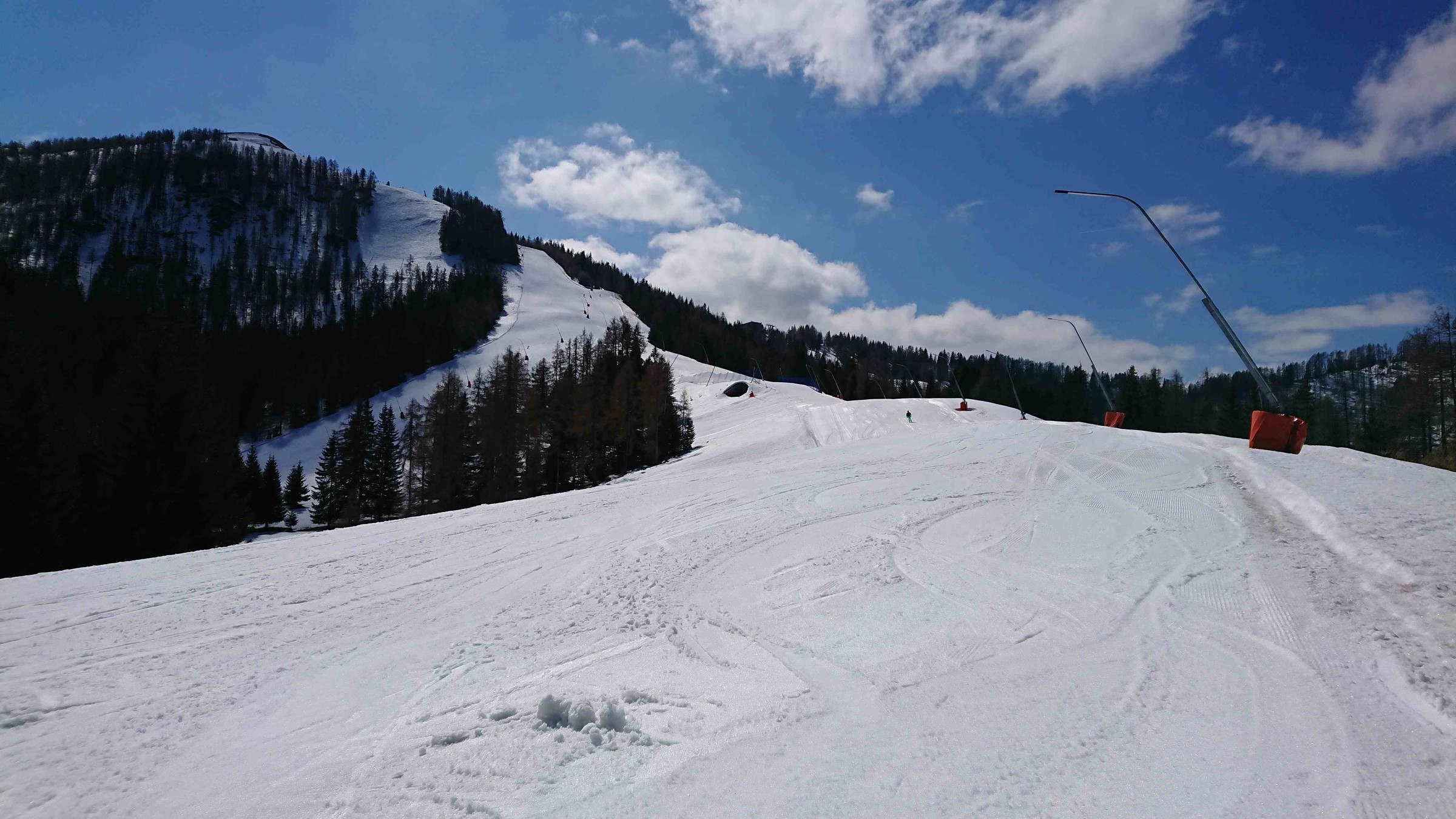 Betrieb: sehr sehr wenig, obwohl die meisten großen Hotels noch geöffnet hatten und auch deren Parkplätze ganz gut gefüllt waren. Außerdem gibt es den Skipass gratis, wenn man in teilnehmendem Hotel nächtigt.