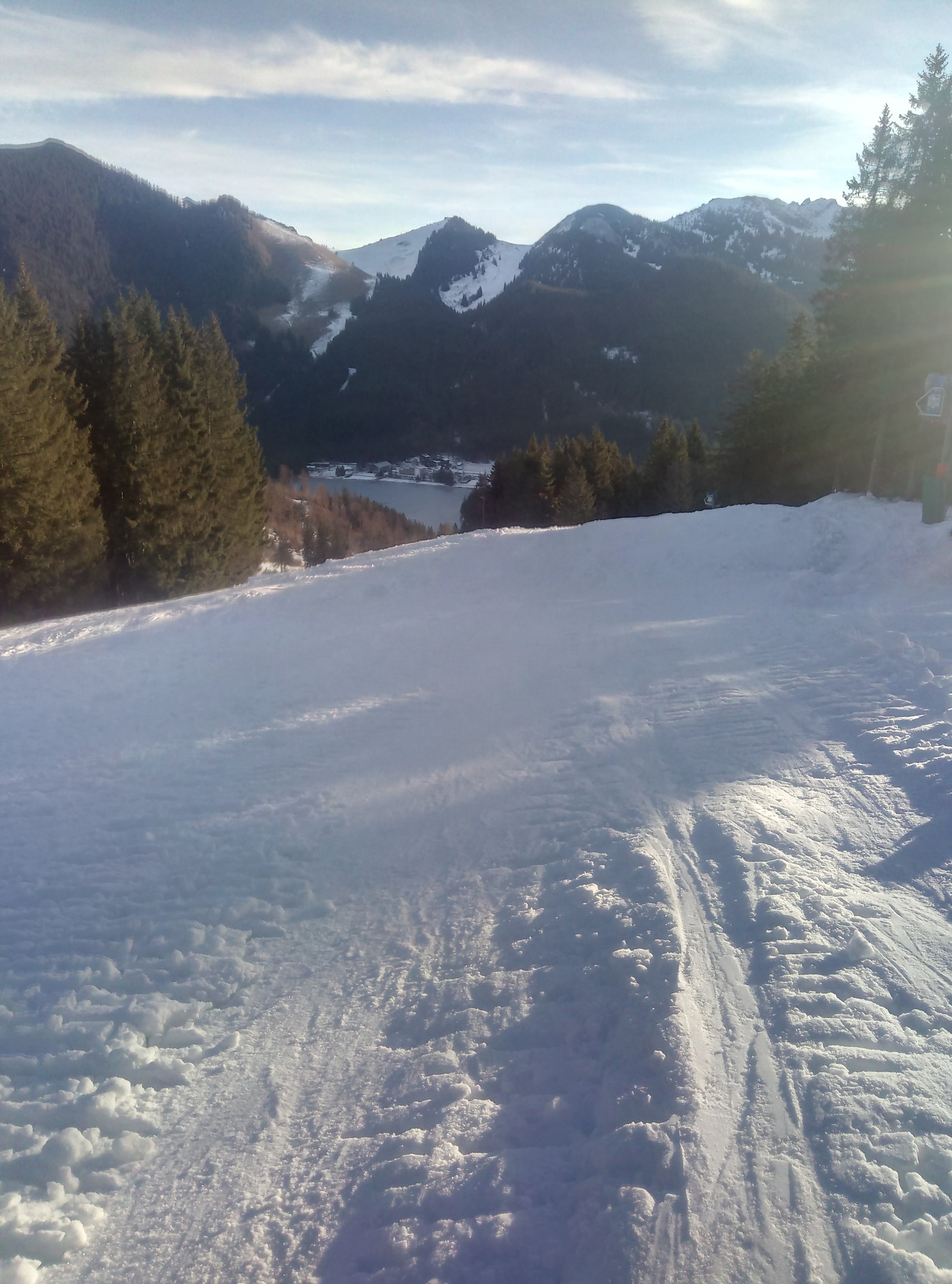 Immer noch gute Bedingungen. Kunstschnee an der Suttenabfahrt noch nicht verteilt, aber irgendwie doch nett zum fahren. Hoffen wir mal auf noch etwas Schnee und es könnte noch was werden mit der Saison, wenn wohl auch nur für die ohne feste Bindung....